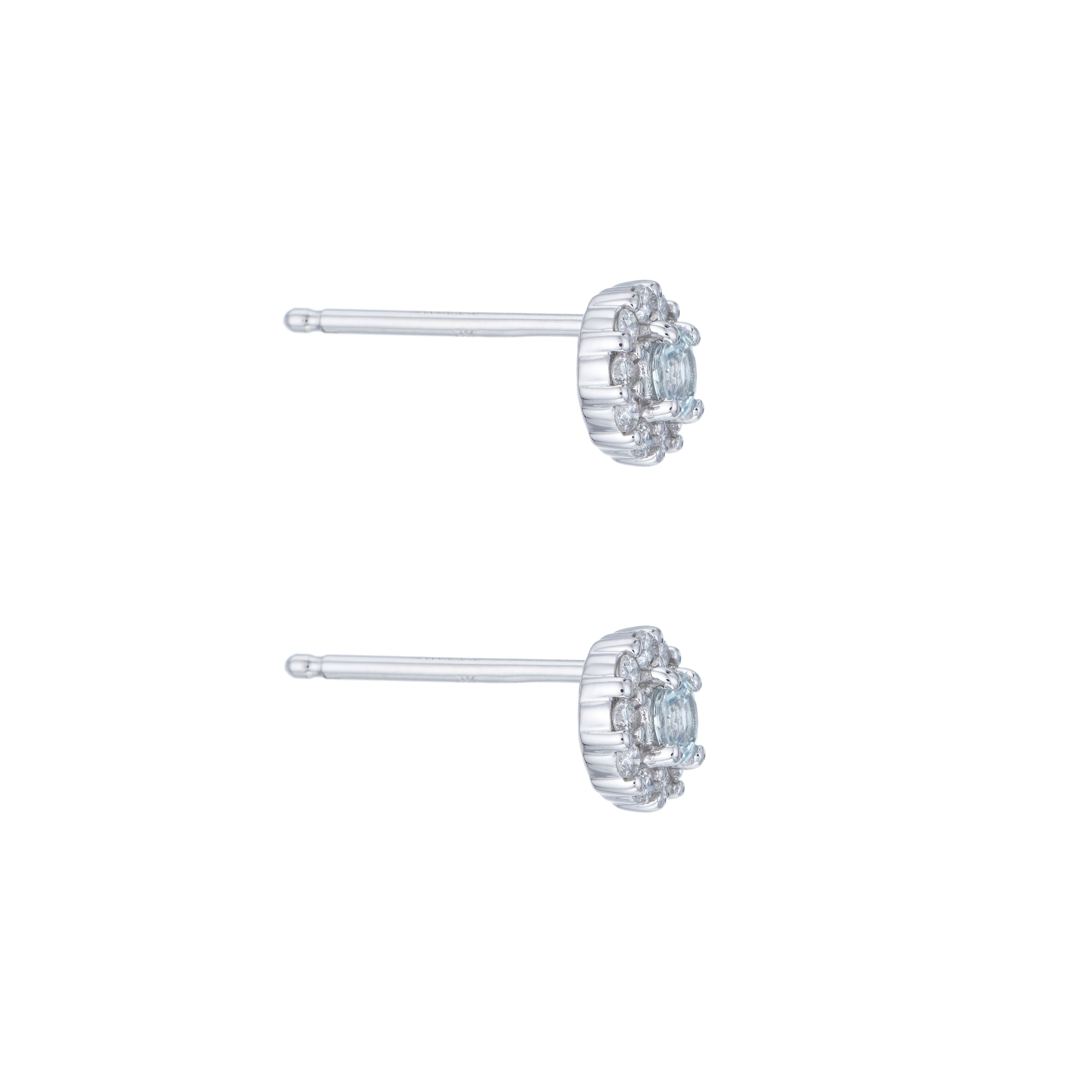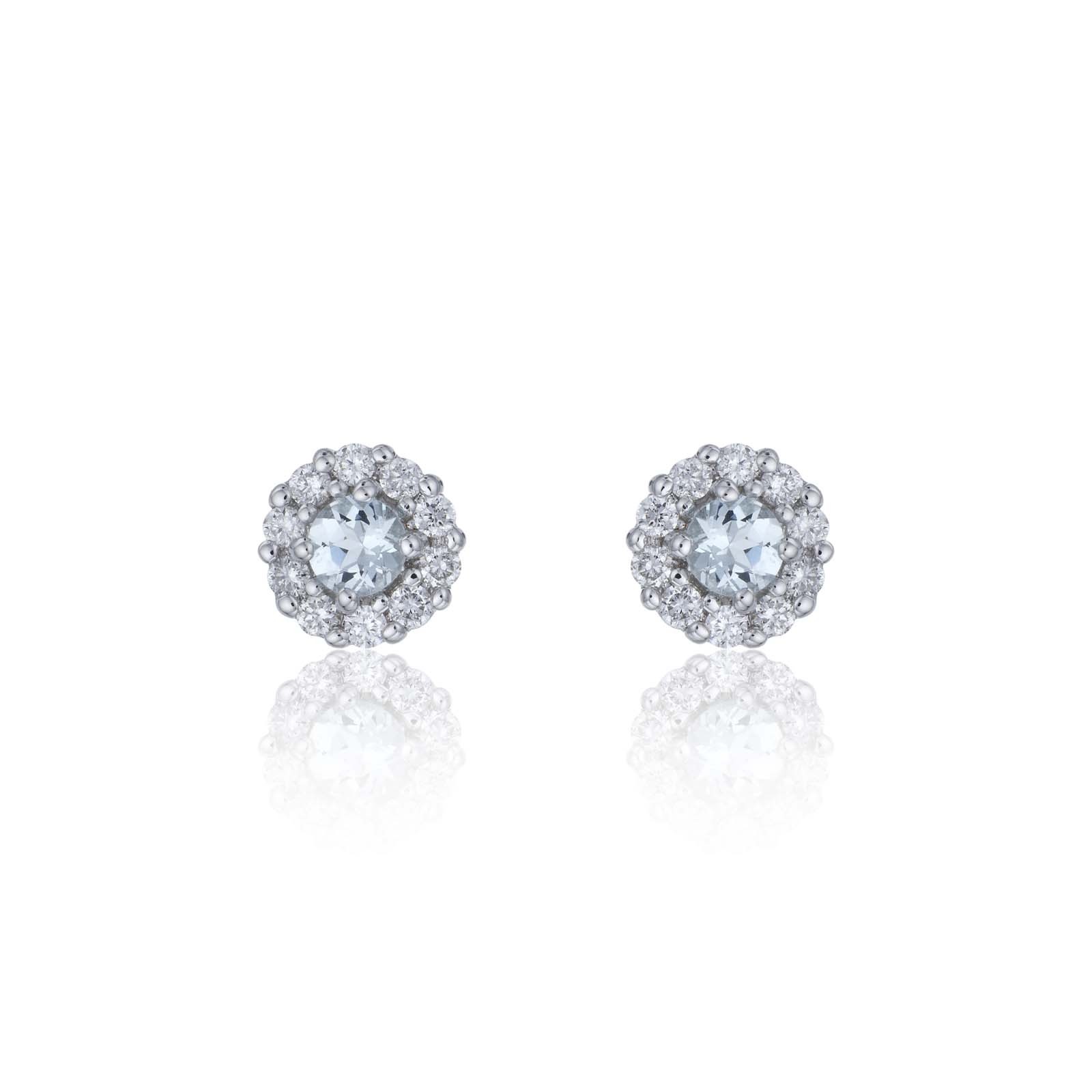 9ct White Gold Diamond 0.17ct and Aquamarine Halo Earrings