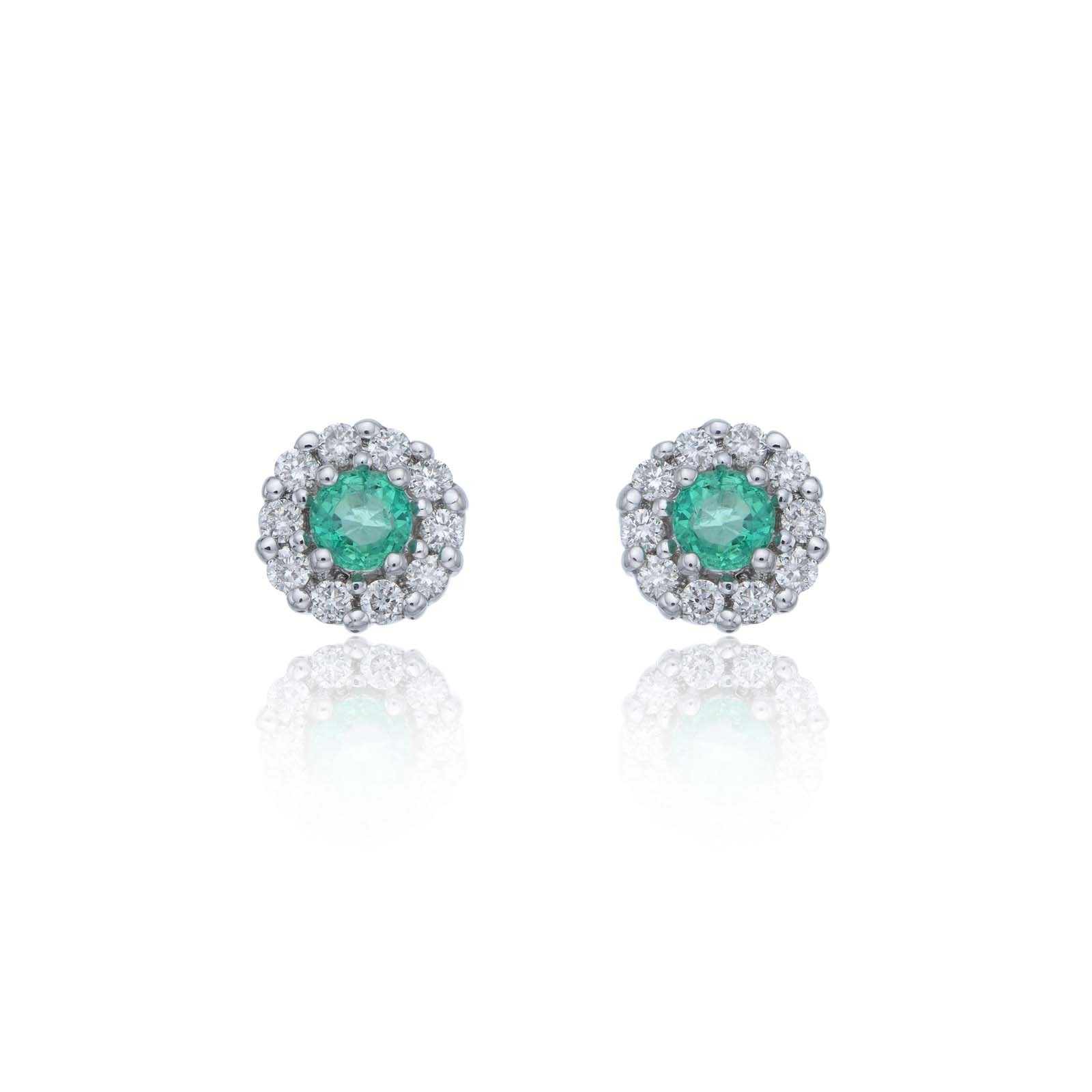 9ct White Gold Diamond 0.17ct and Emerald Halo Earrings