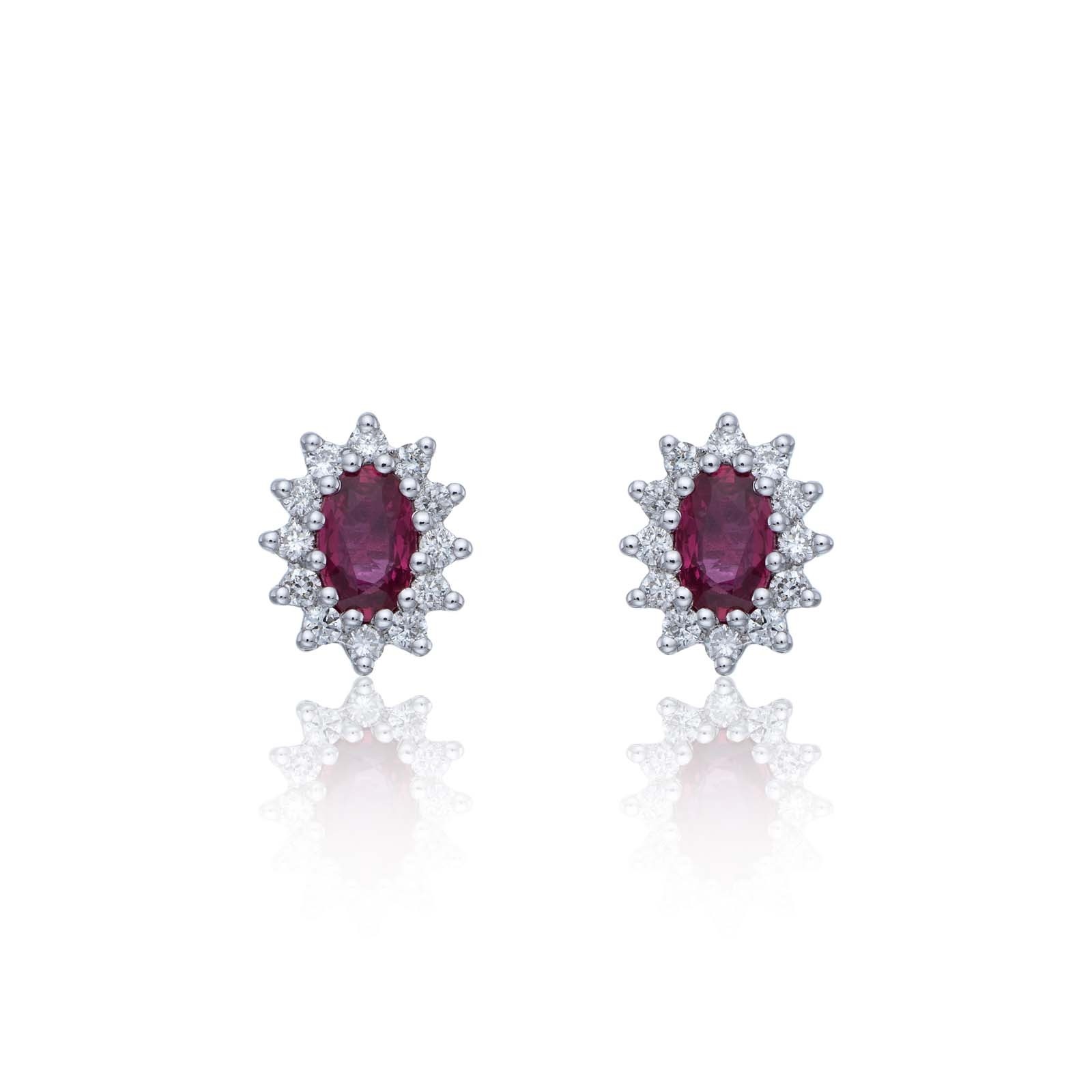 9ct White Gold Oval Ruby and Diamond Halo Stud Earrings