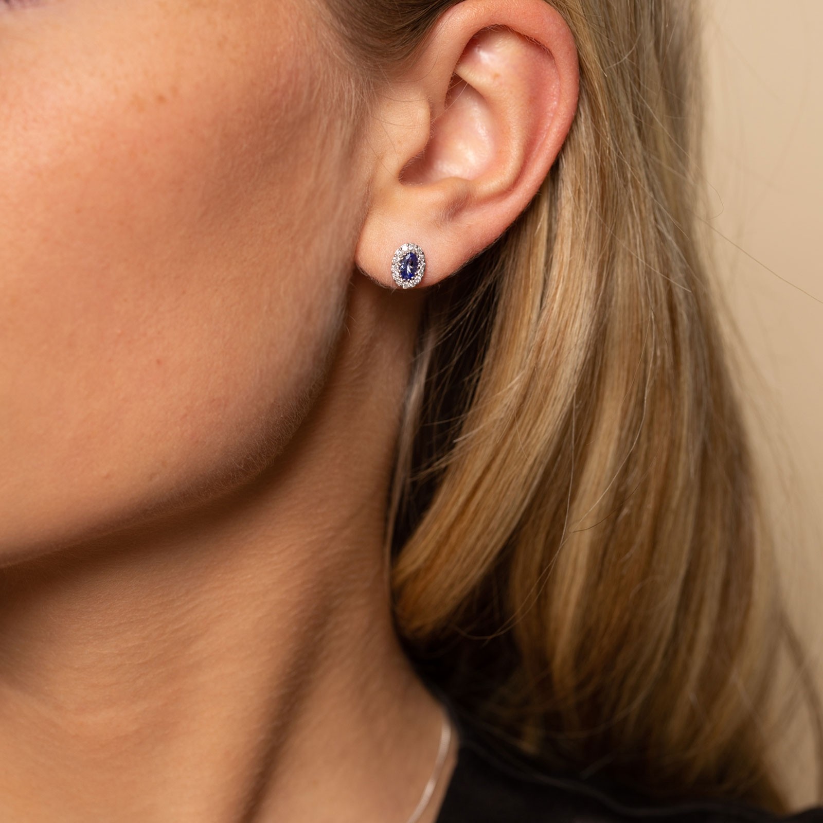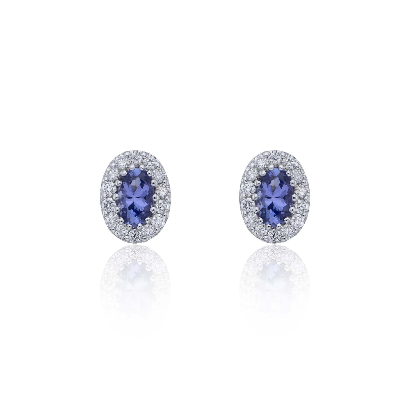 9ct White Gold Diamond 0.23ct and Tanzanite Halo Earrings