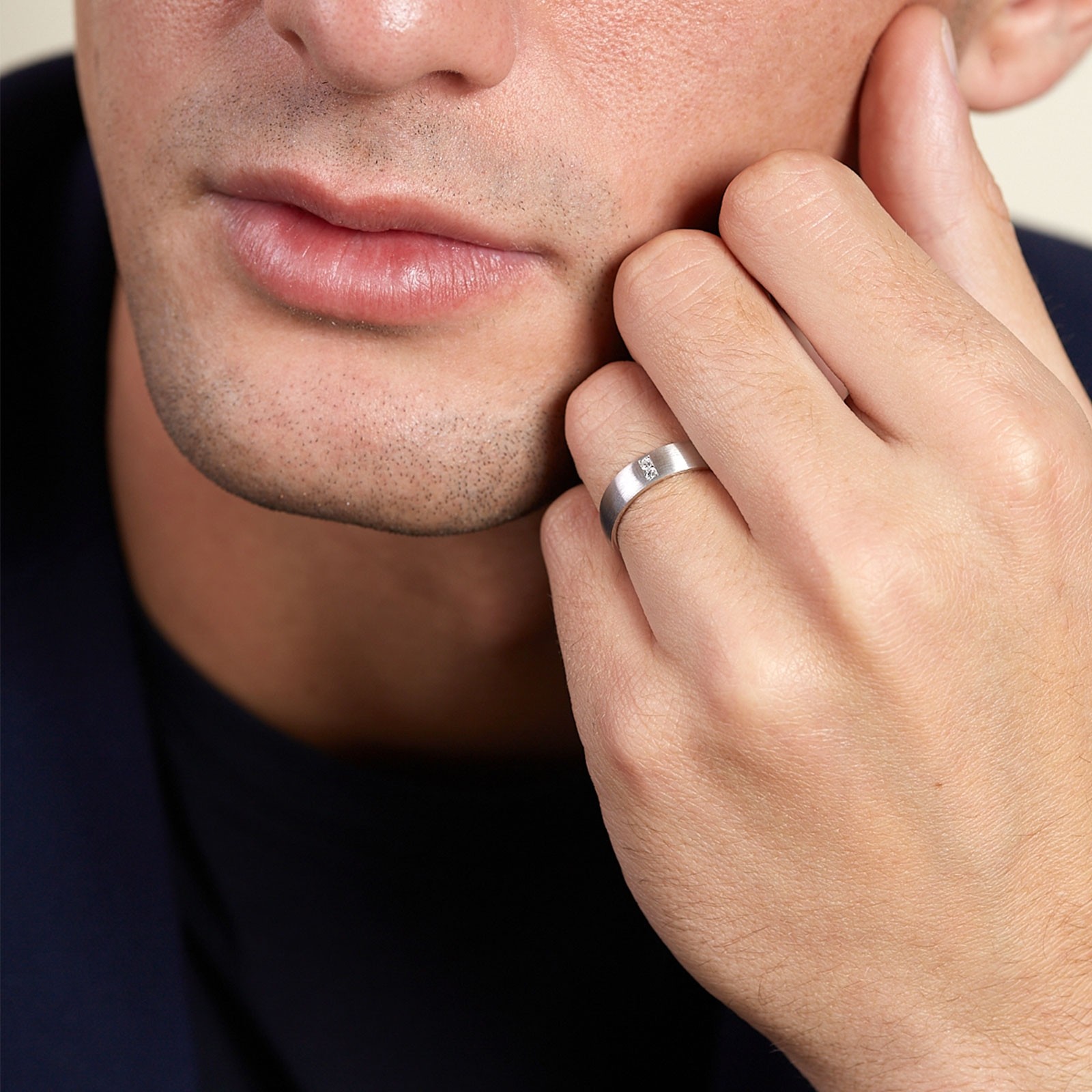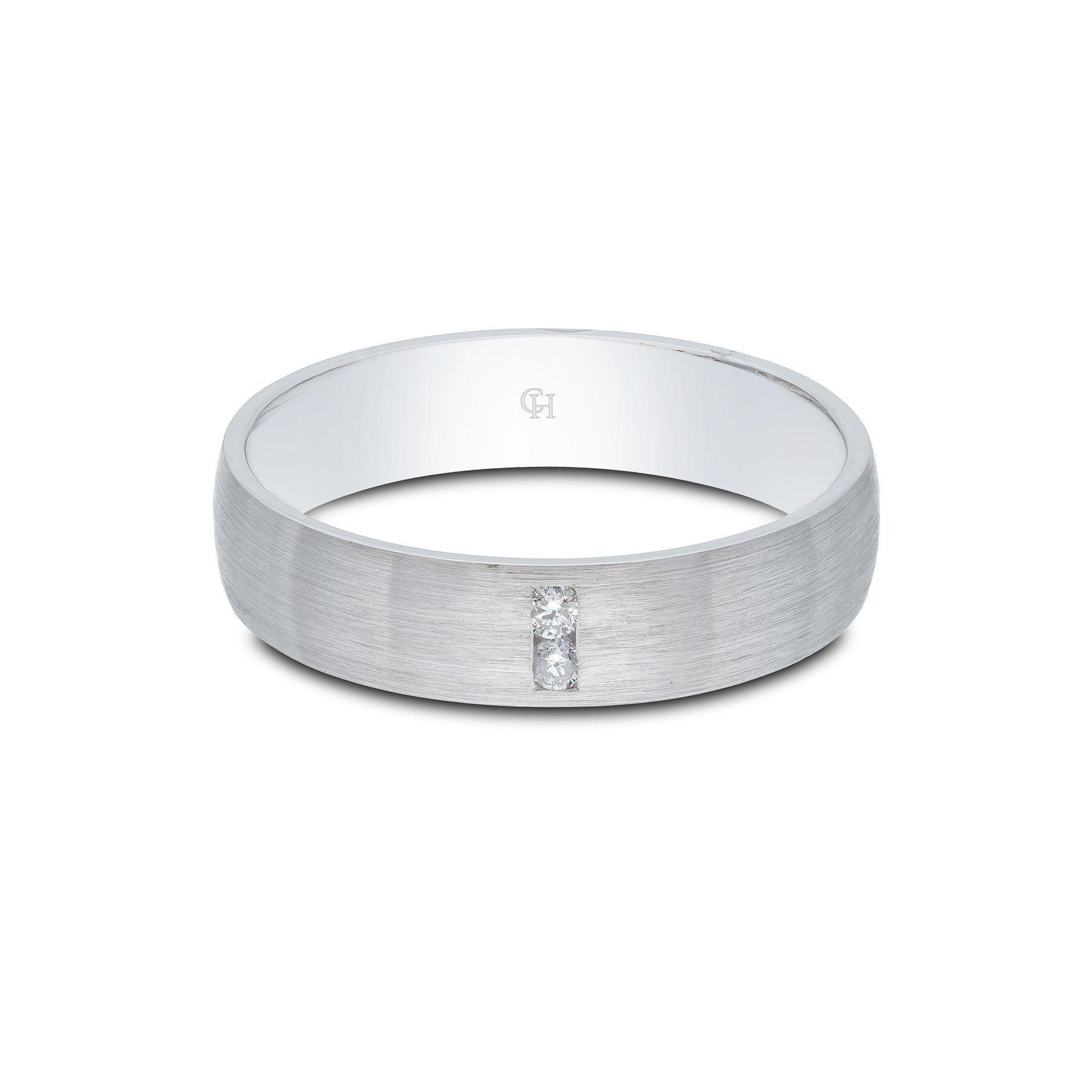 Simple and luxurious, this 9ct white gold diamond set men's wedding ring is the perfect way to symbolise your love on the most special day of your life. Crafted in a brushed 9ct white gold band, two beautiful princes cut diamonds with a total carat weight of 0.06. Total band width of 5mm.