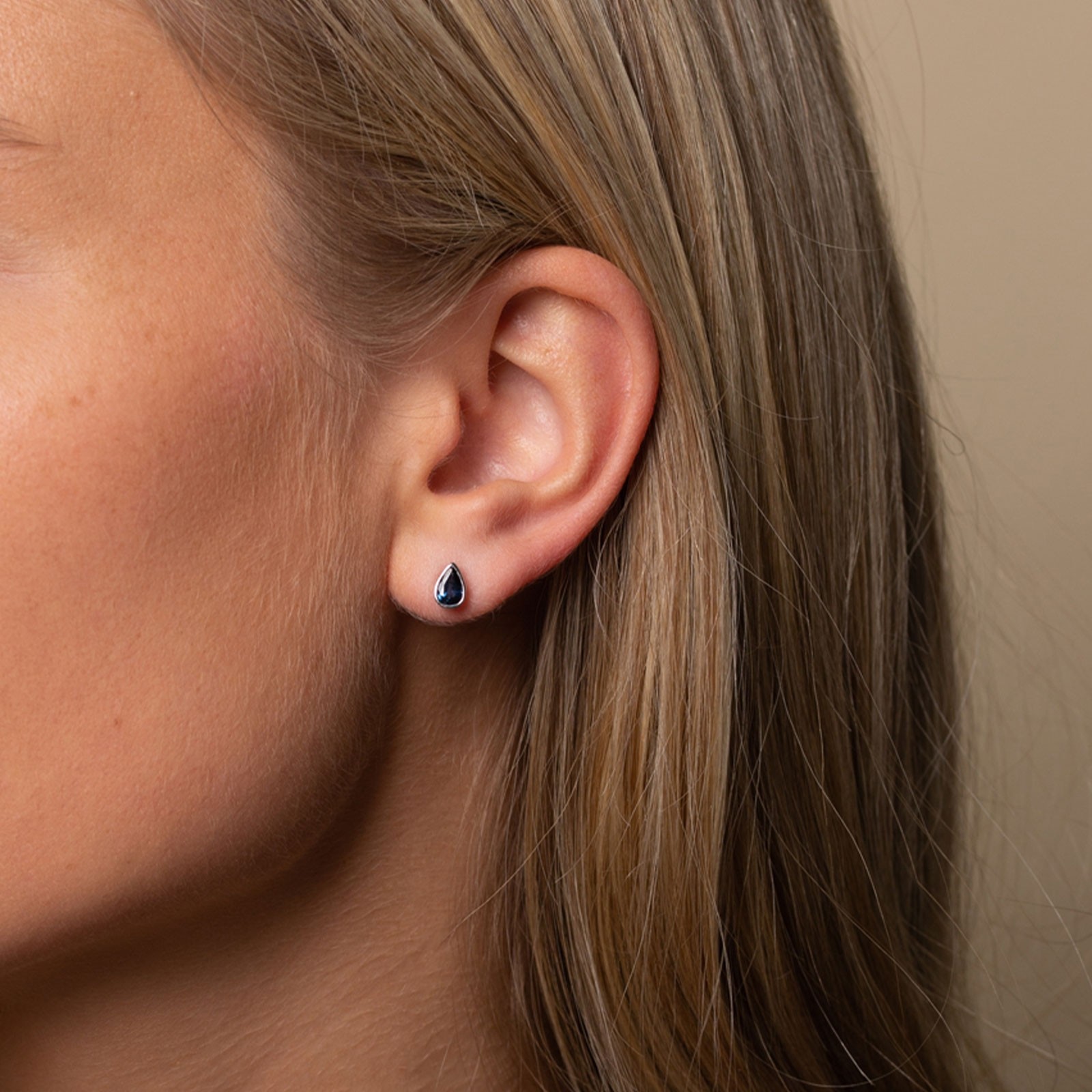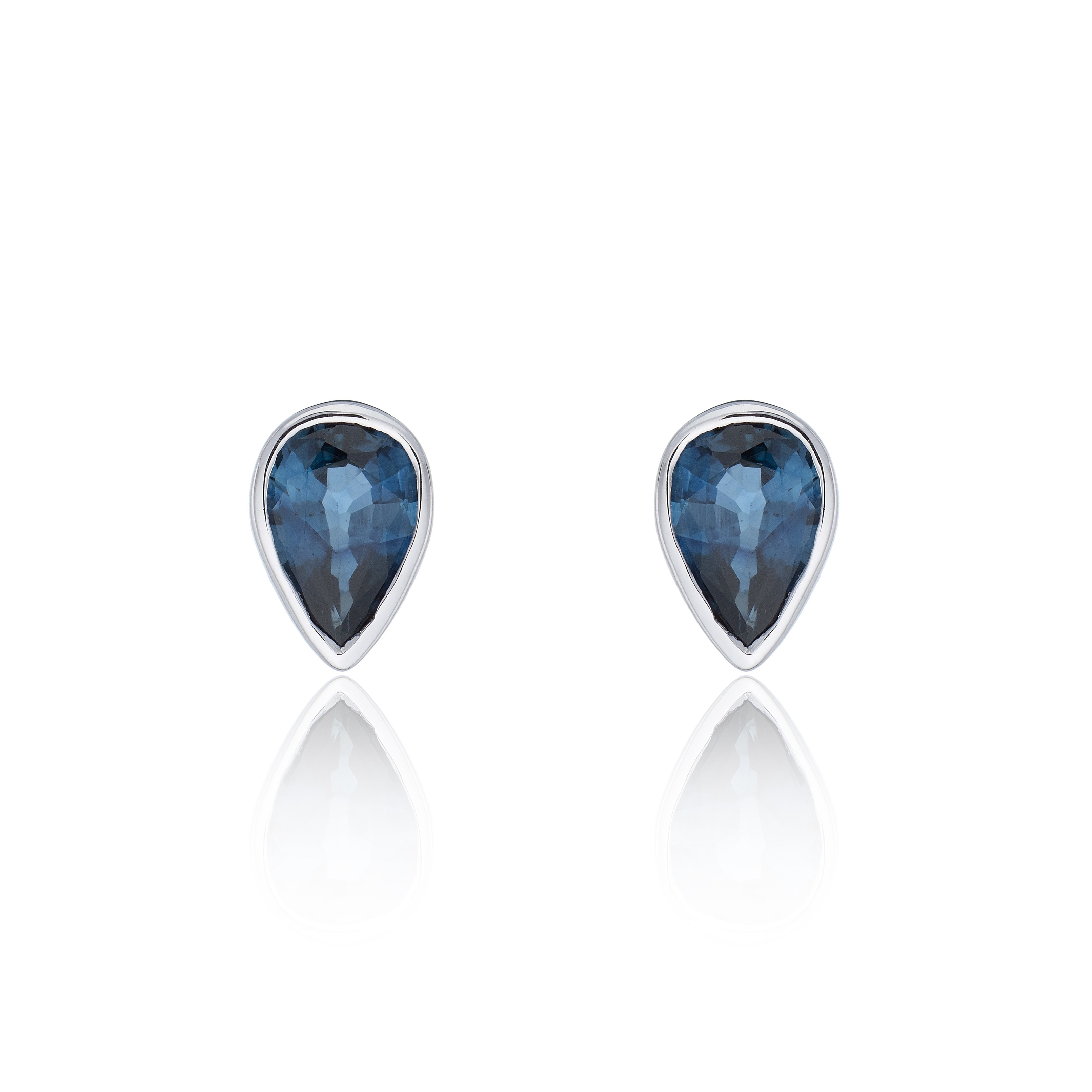 Add these dainty 9ct White Gold Pear Sapphire Rub Over Earrings from Chisholm Hunter to your everyday jewellery collection. Sapphires are associated with royalty and it is easy to see why when looking at the colour of the teardrop-shaped sapphire in each stud earring. This piece looks great paired with the matching necklace.