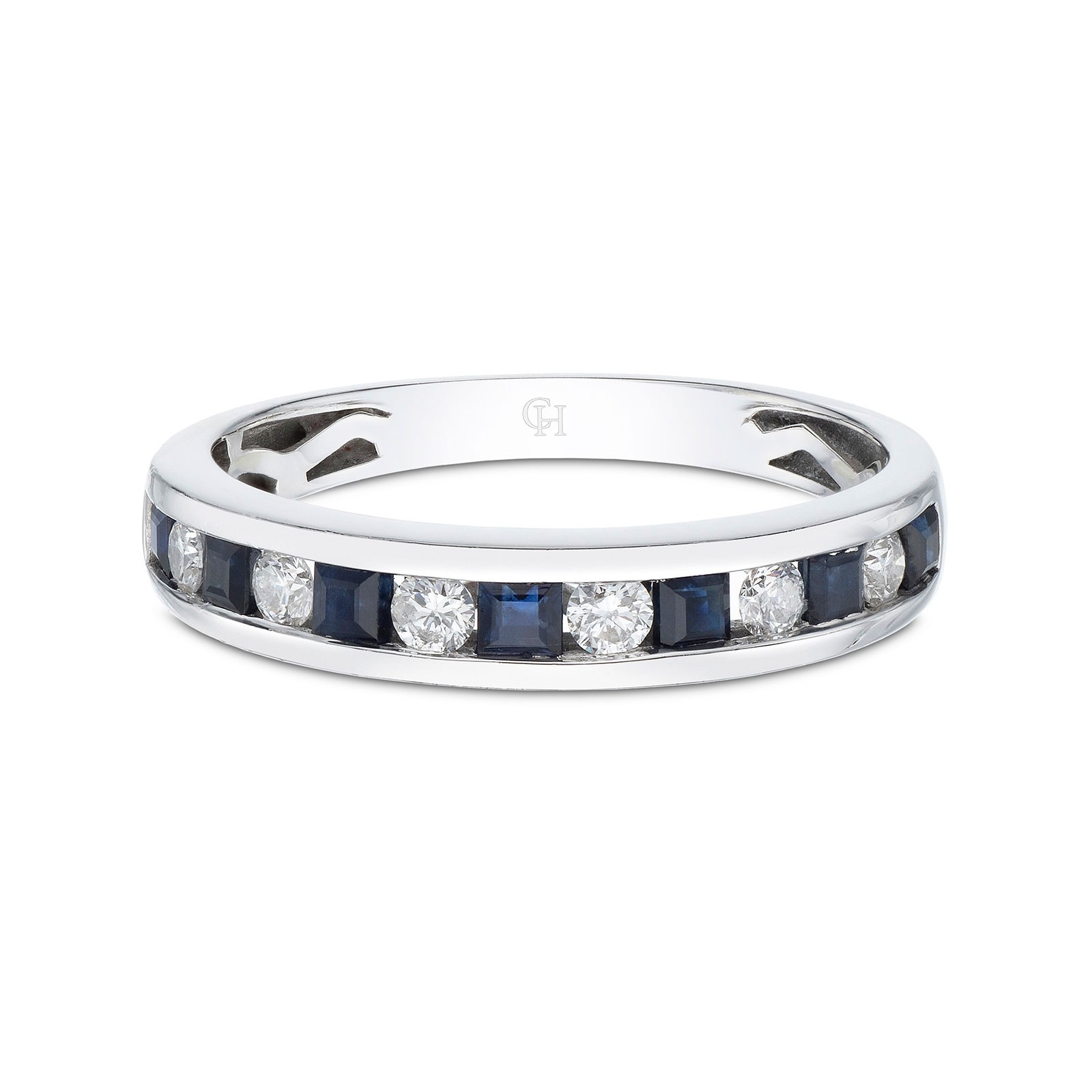 9ct White Gold Princess Cut Sapphire and Brilliant Cut Diamond 0.63ct Eternity Ring