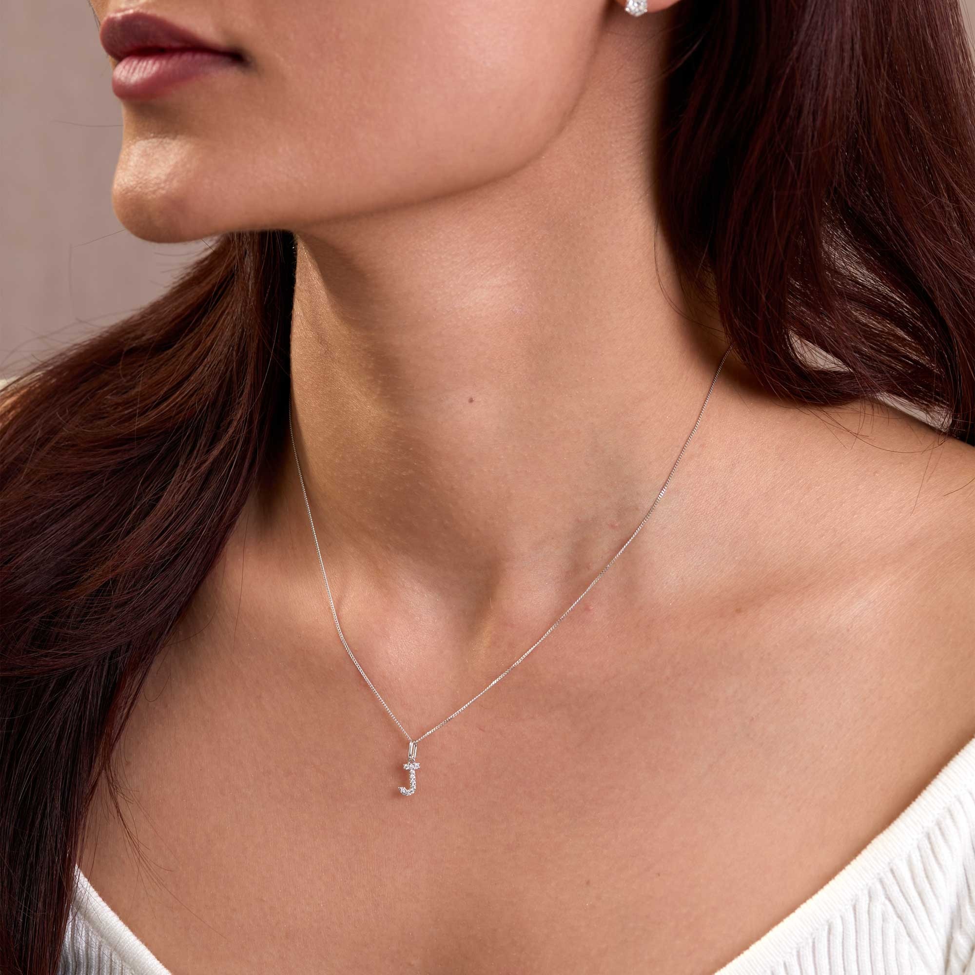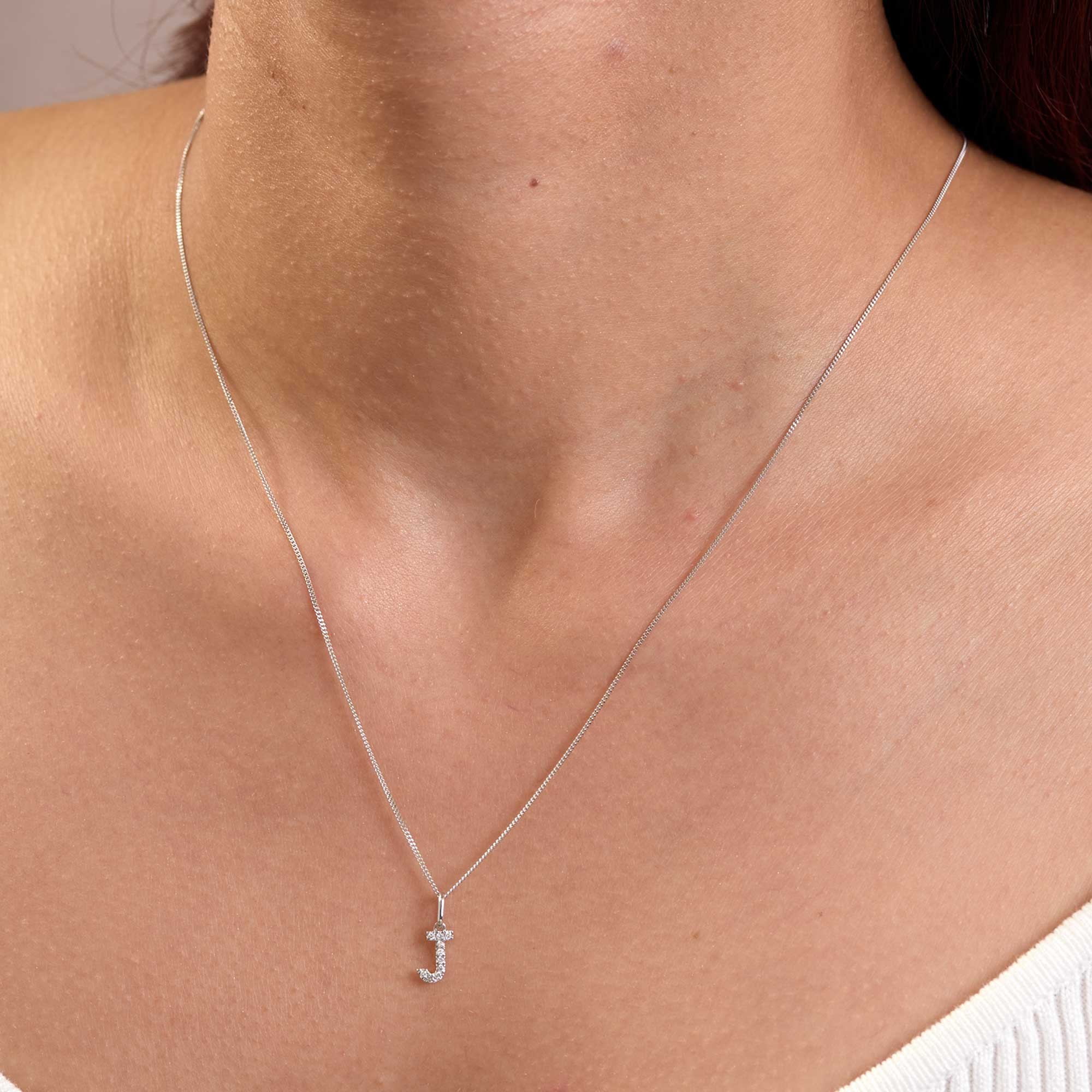 The 9ct White Gold Round Brilliant 0.04ct Diamond Letter J Pendant by Chisholm Hunter offers a personal touch with refined simplicity. Round brilliant diamonds set into the letter J brings subtle sparkle and meaning. Crafted in polished 9ct white gold, this necklace suits daily wear and special moments alike.