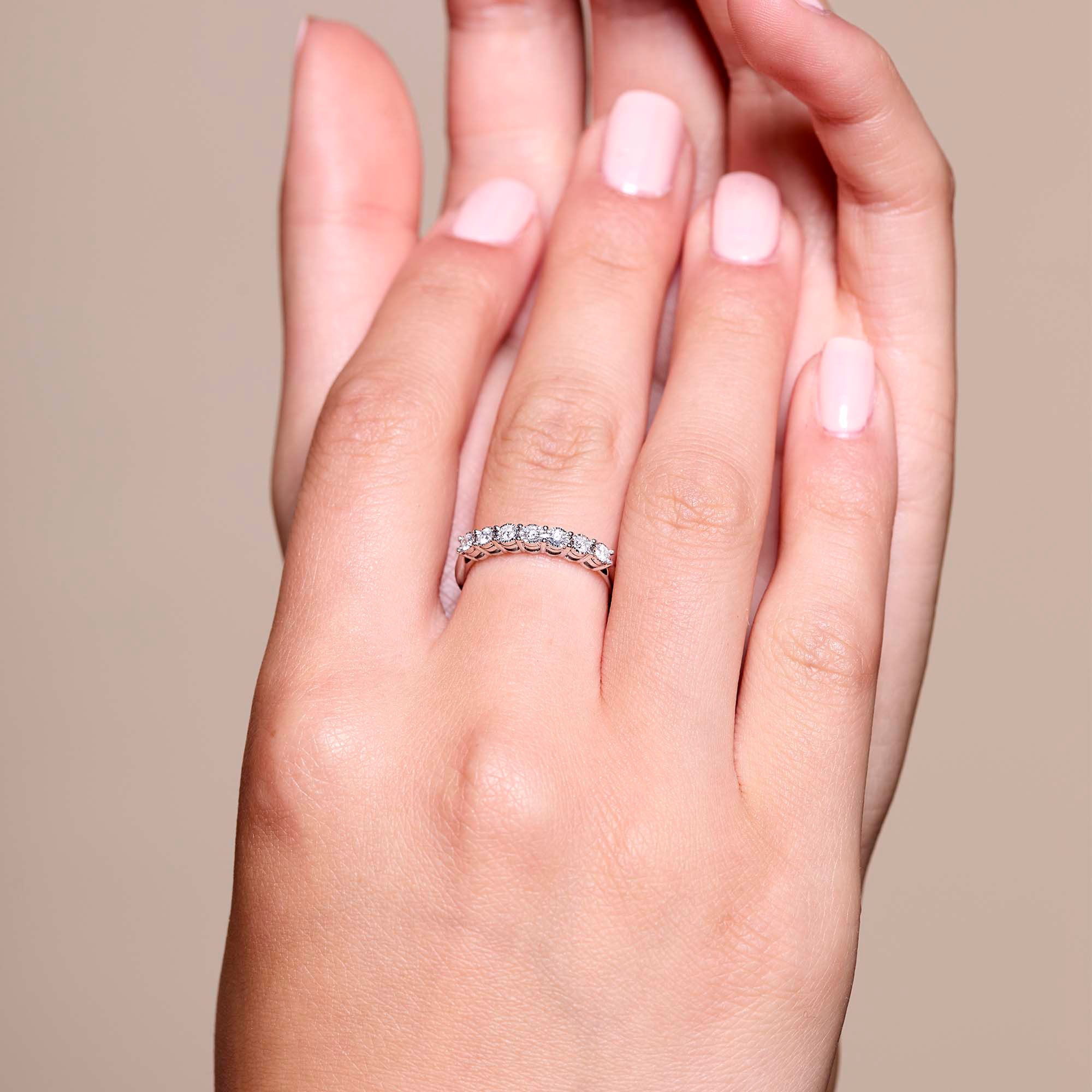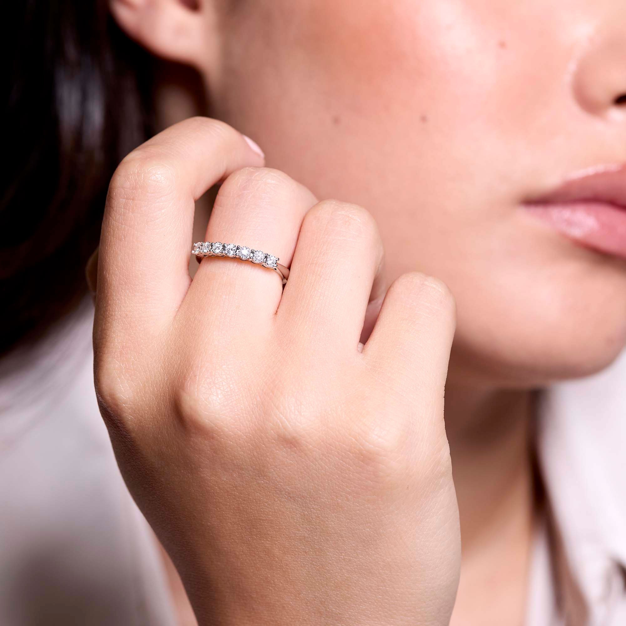 The round brilliant cut amplifies the diamond's natural luminosity, making it a dazzling symbol of your infinite commitment. Perfectly suited for her, the timeless design of this eternity ring makes it an ideal gift for anniversaries or special milestones.