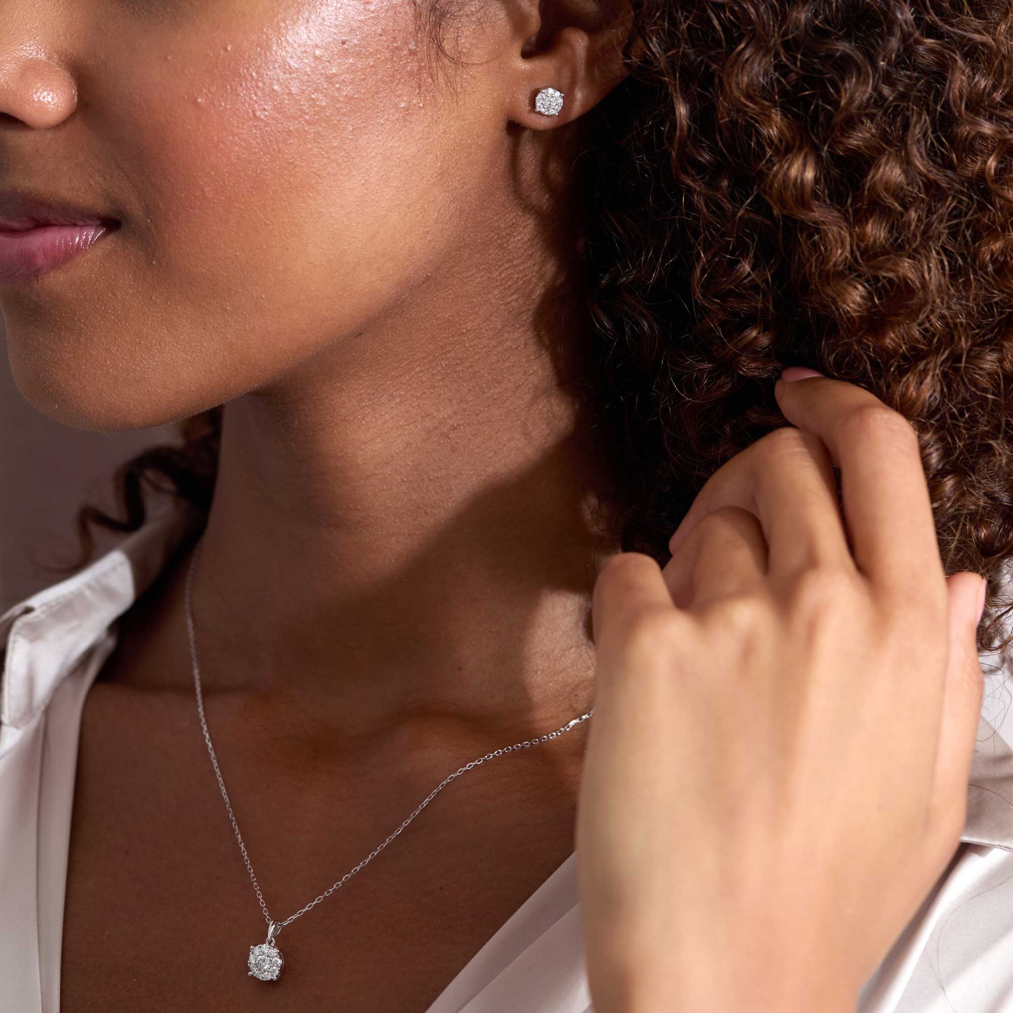 Introducing the exquisite 9ct White Gold Round Brilliant 0.40ct Diamond Illusion Style 4 Claw Earrings from Chisholm Hunter. Crafted with precision, these earrings shine with elegance, featuring clear diamonds that perfectly complement the white gold setting. Each round brilliant cut diamond is securely held in a classic four-claw design, allowing for maximum sparkle.