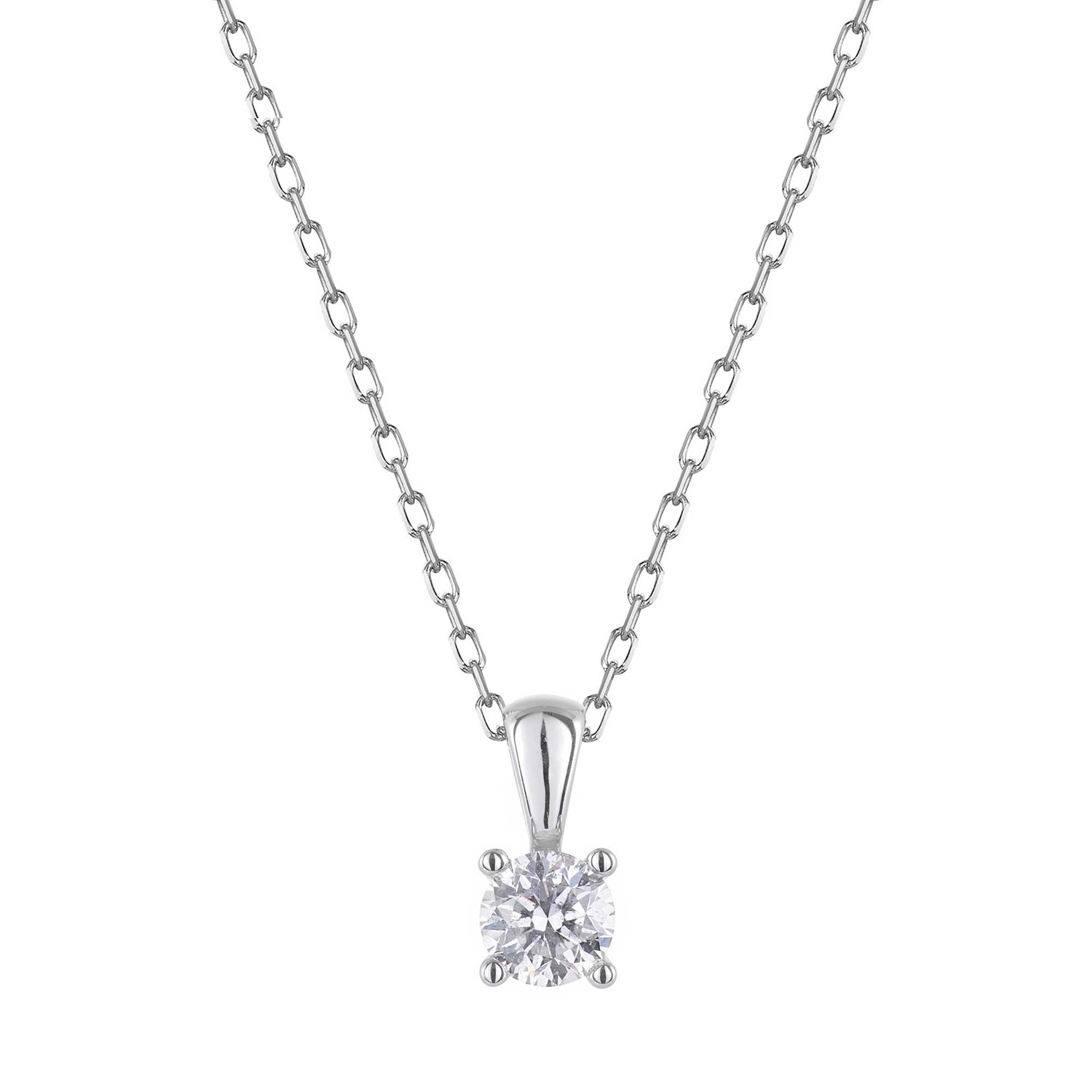 9ct White Gold Round Brilliant 0.50ct Diamond 4 Claw Pendant