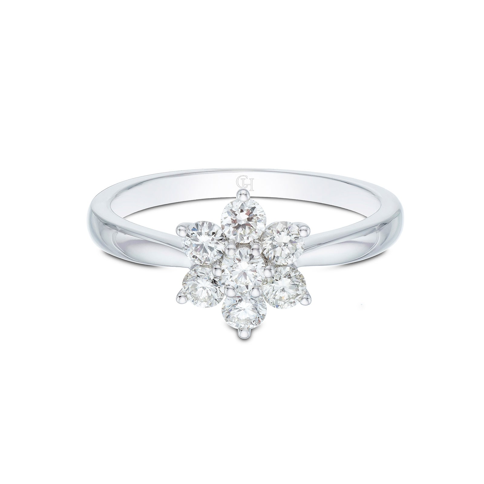 A truly dainty yet exuberant design, this stunning 9ct white gold flower diamond cluster ring will reignite your passionate affair with luxury diamonds. Adorned on a sleek 9ct white gold band, a handful of round brilliant diamonds are placed at the centre to resemble a flower silhouette. With a total weight of 0.51ct, immerse yourself in sparkling perfection exclusively from Chisholm Hunter. Diamond information- Cut- Round brilliant, Total weight- 0.51ct.
