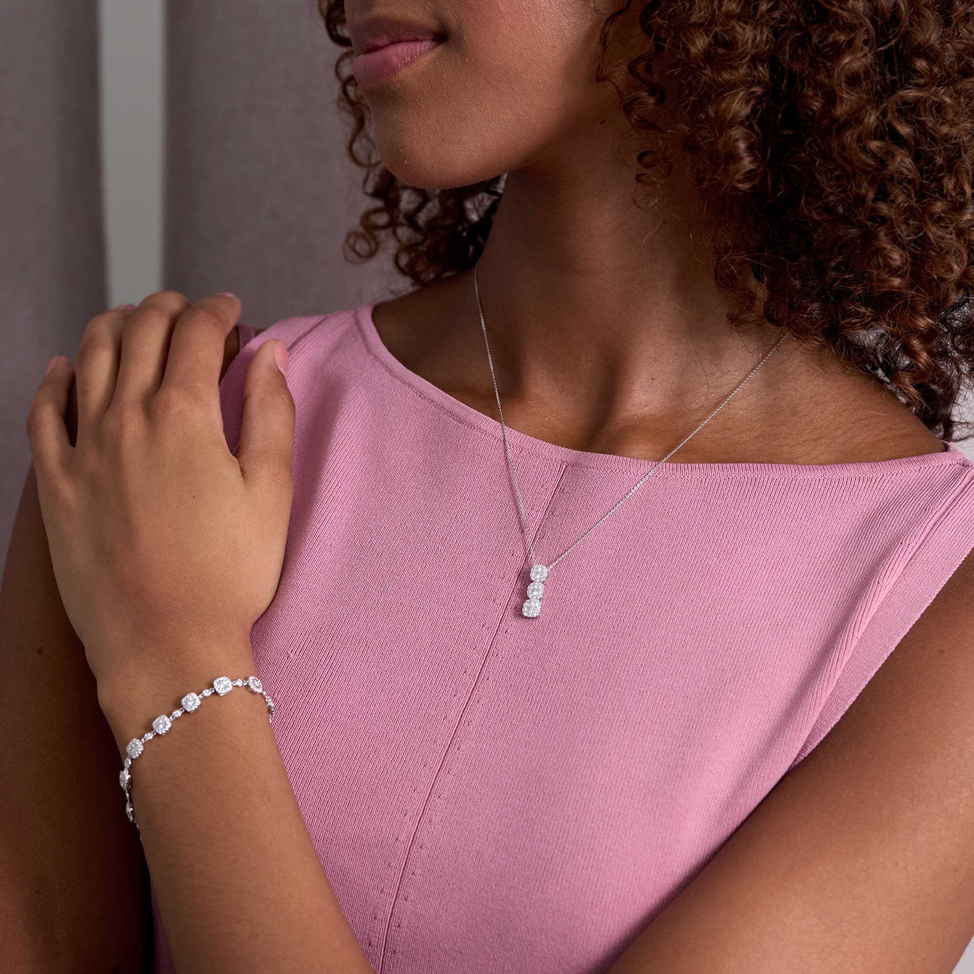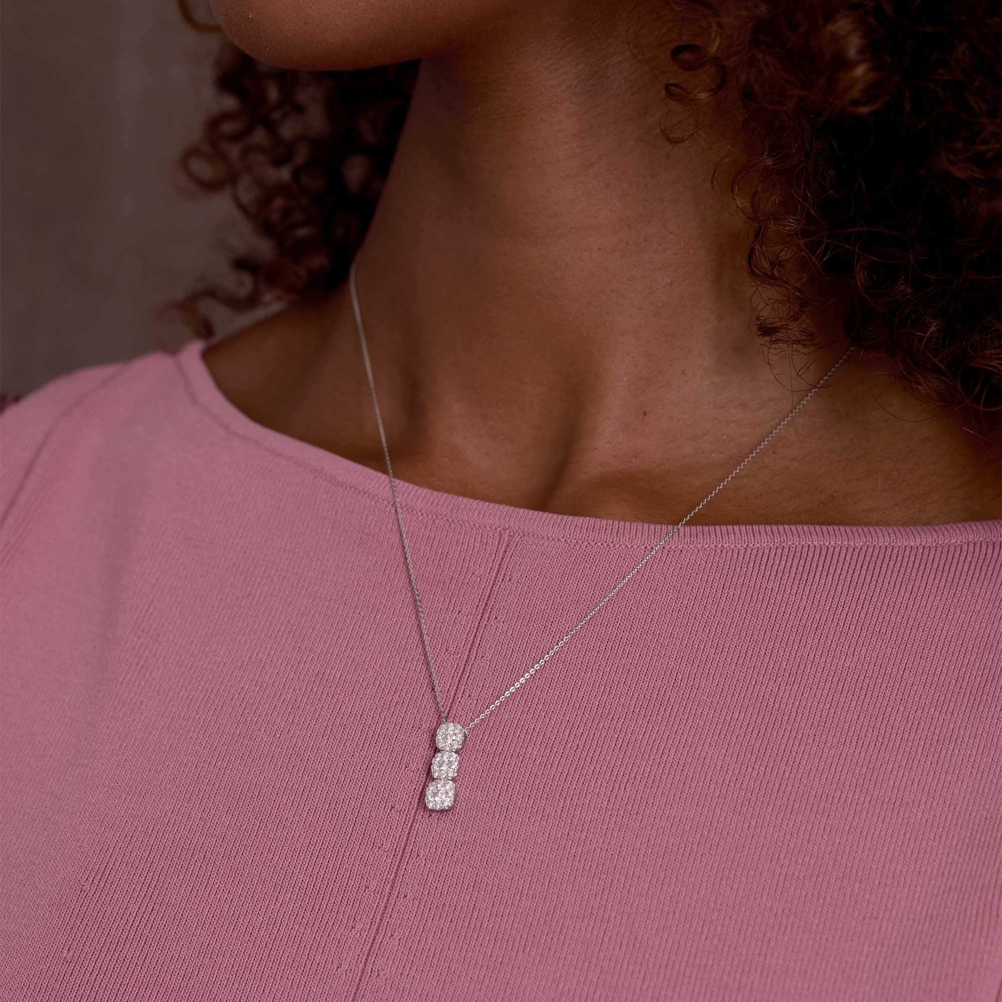 9ct White Gold Round Brilliant 0.70ct Diamond Triple Cluster Drop Pendant