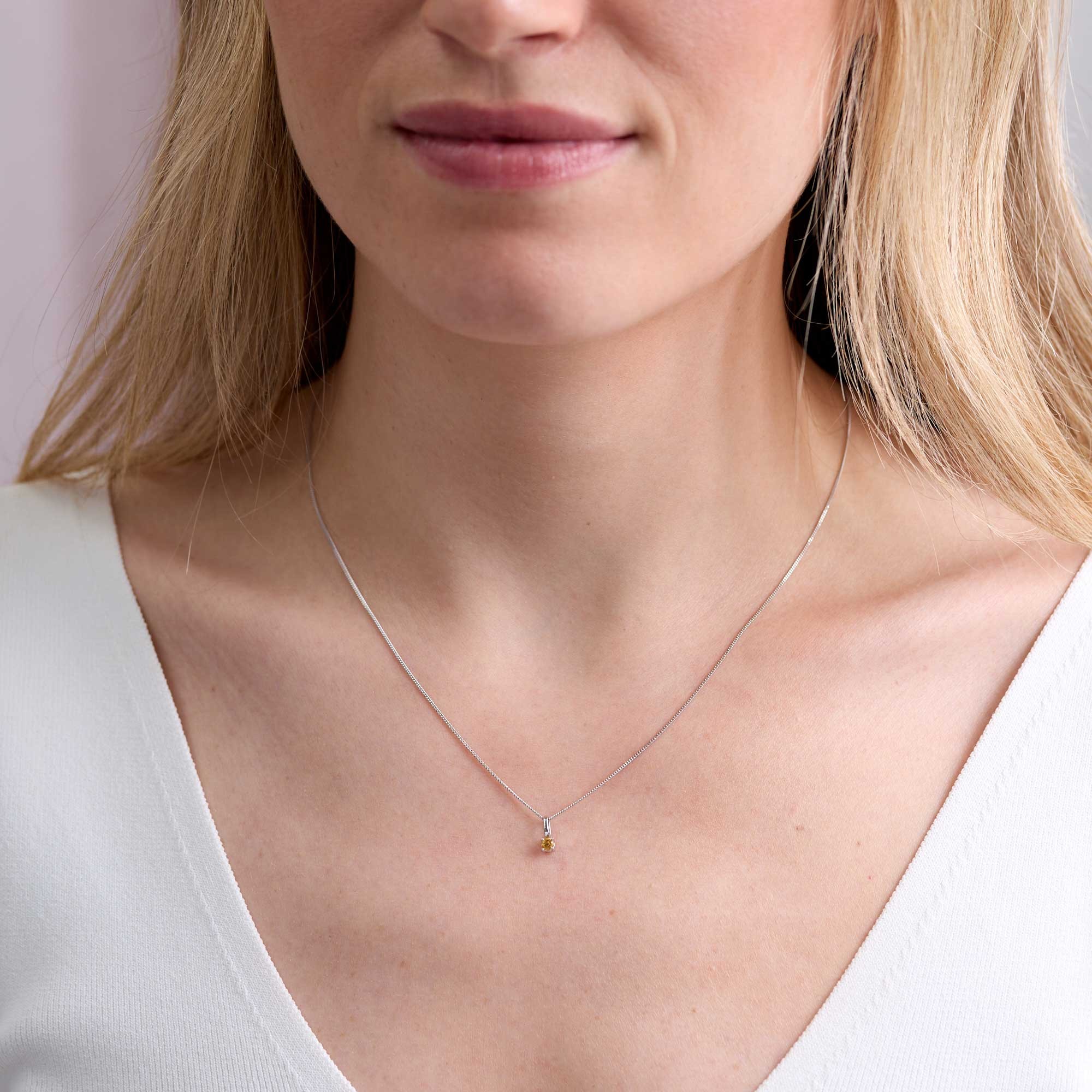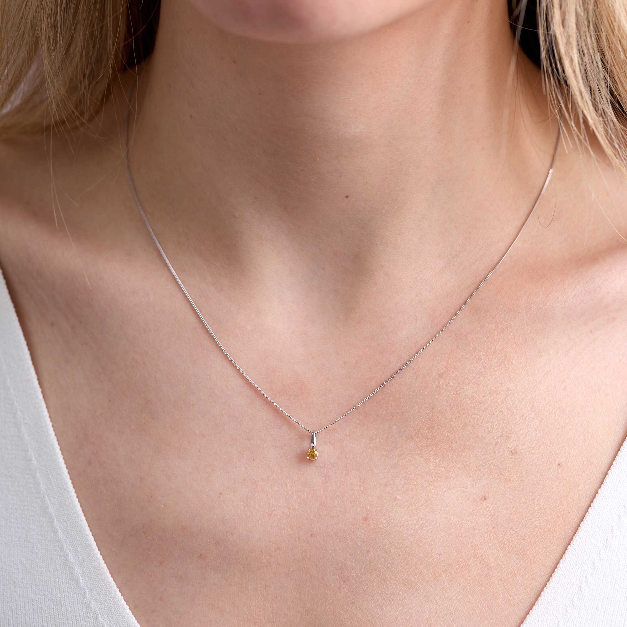 9ct White Gold Round Brilliant Citrine Solitaire Pendant Charm