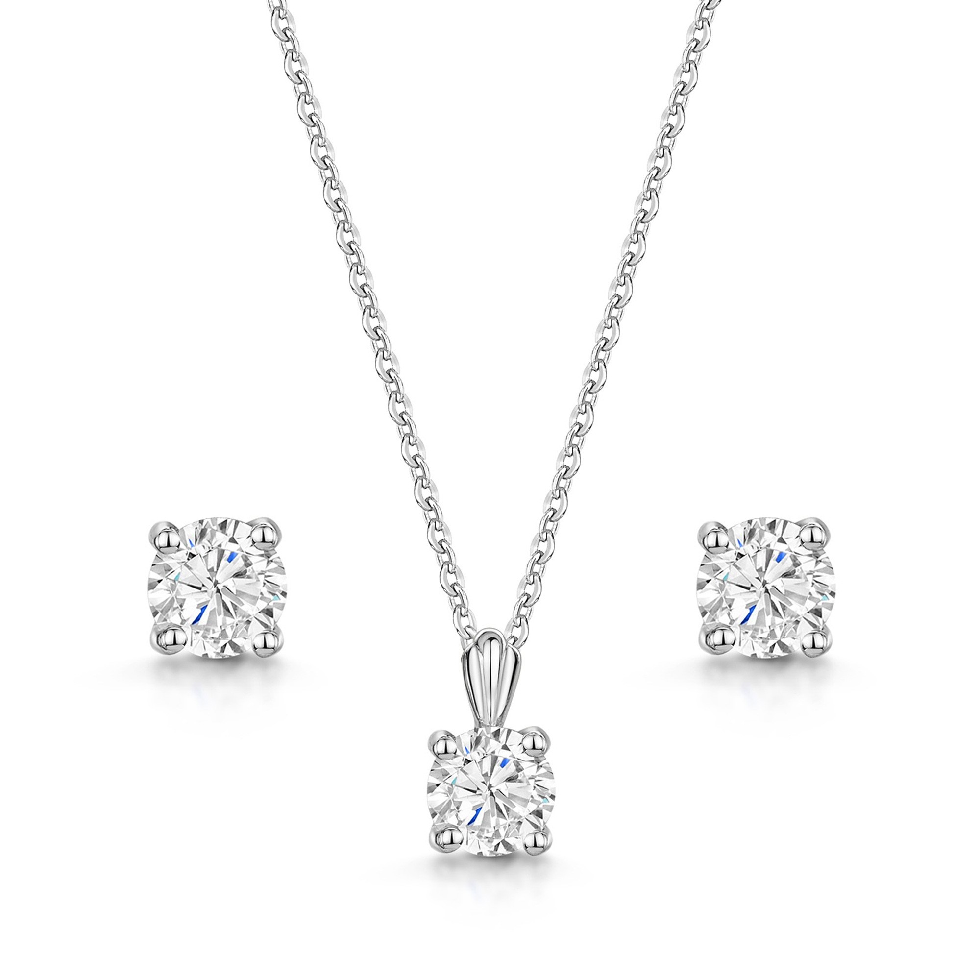 9ct White Gold Round Brilliant Cubic Zirconia Pendant and Earrings Set
