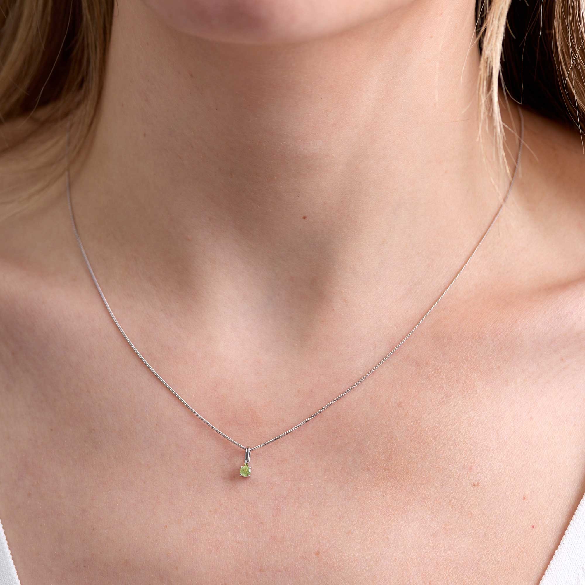 9ct White Gold Round Brilliant Peridot Solitaire Pendant Charm