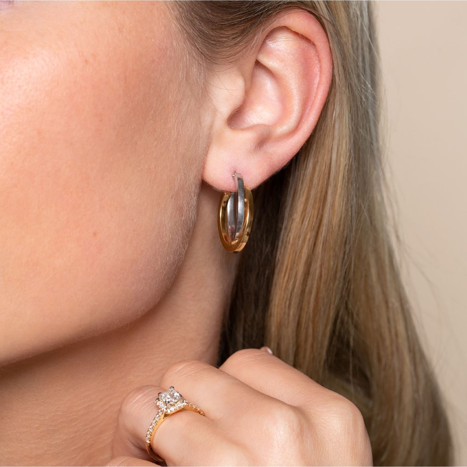 9ct Yellow and White Gold Double Row Hoop Earrings
