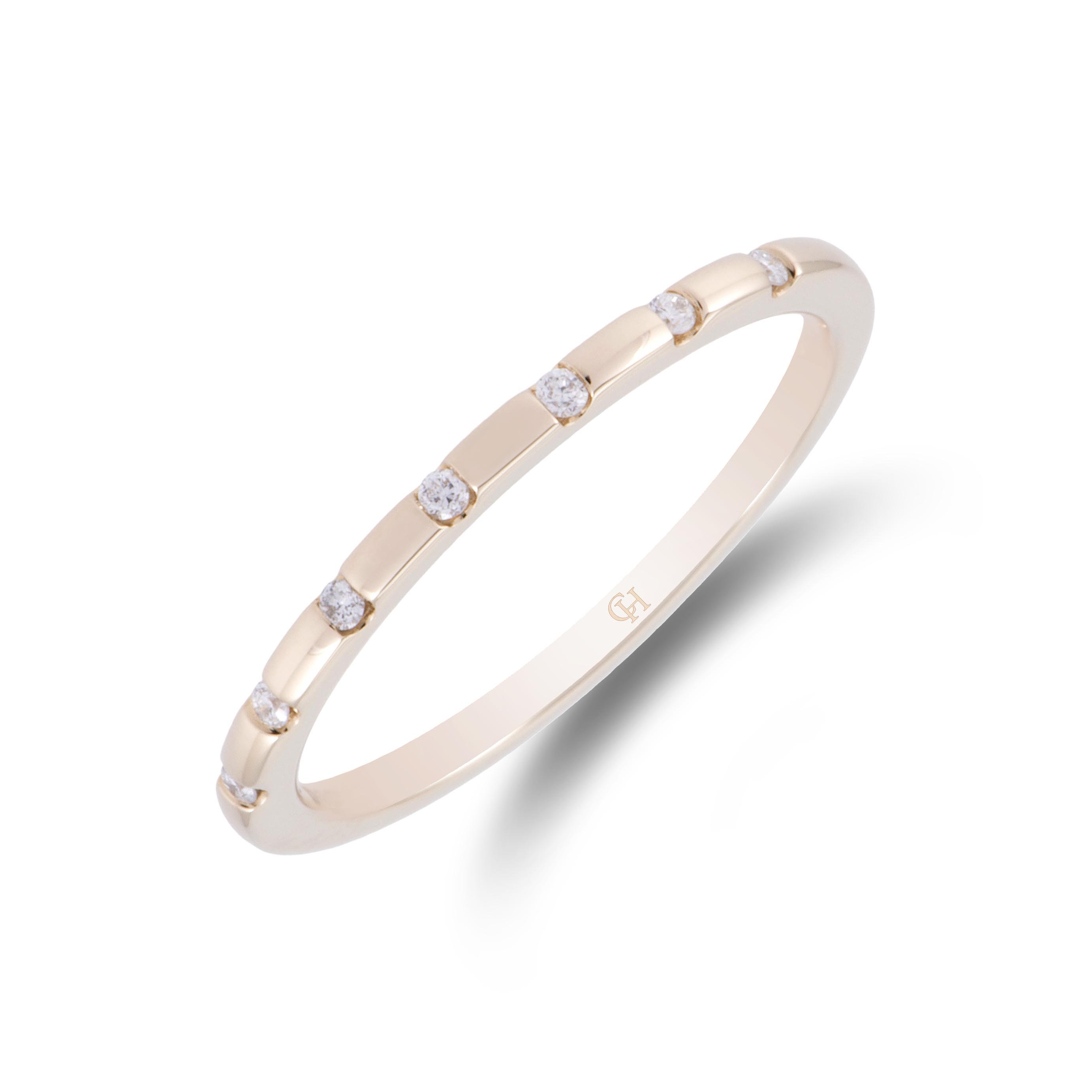 Display your promise of eternal love and commitment with delicate 9ct yellow gold diamond eternity wedding ring. A elegant design, a fine yellow gold band is enhanced by twinking round brilliant cut diamonds, with a total carat weight of 0.05.