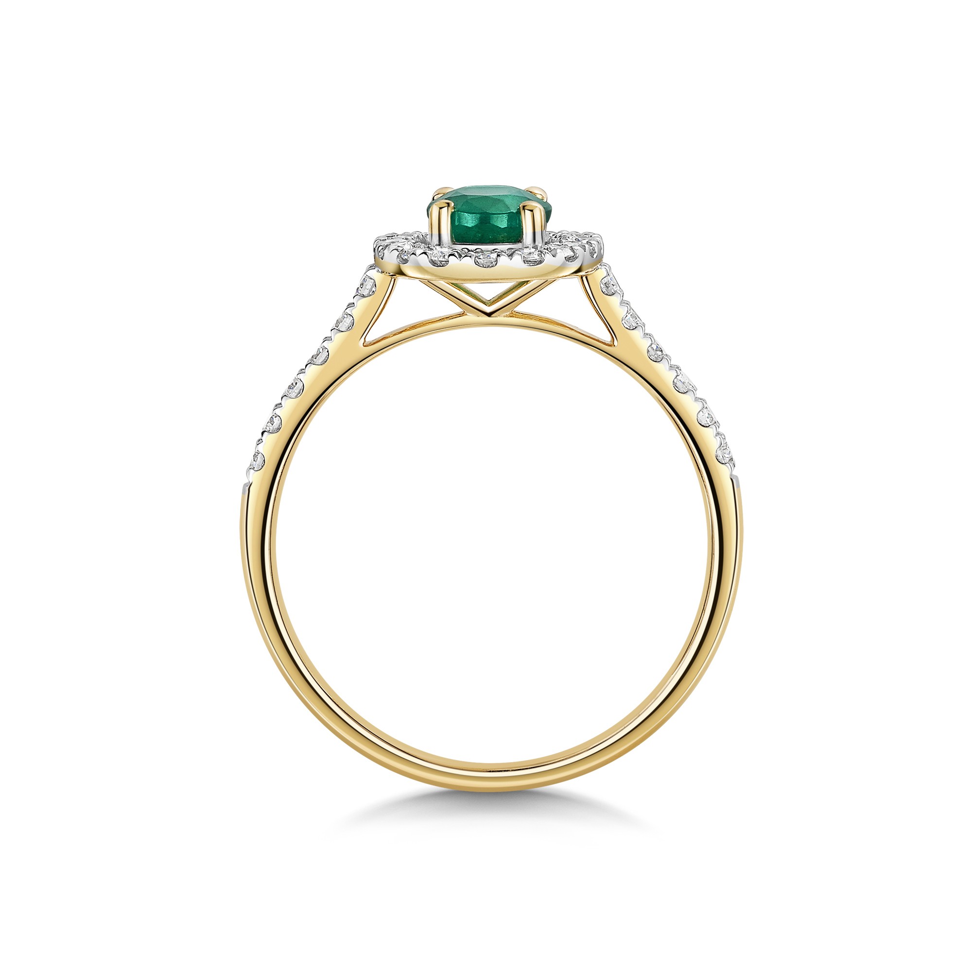 9ct Yellow Gold 0.70ct Oval Cut Emerald with Lab Grown Diamond Halo and Shoulders