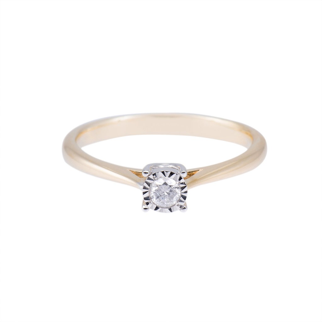 9ct Yellow gold solitaire with a 0.10ct round brilliant diamond held in an illusion setting.