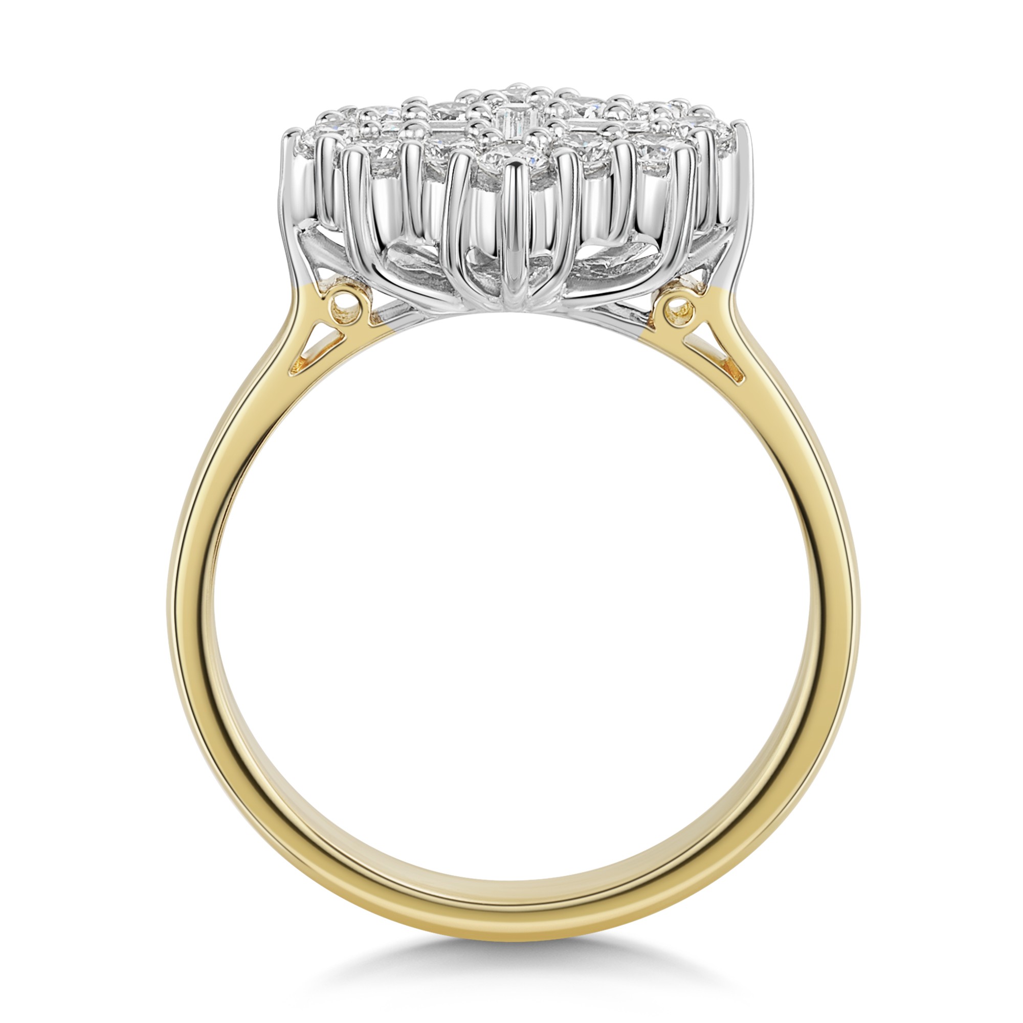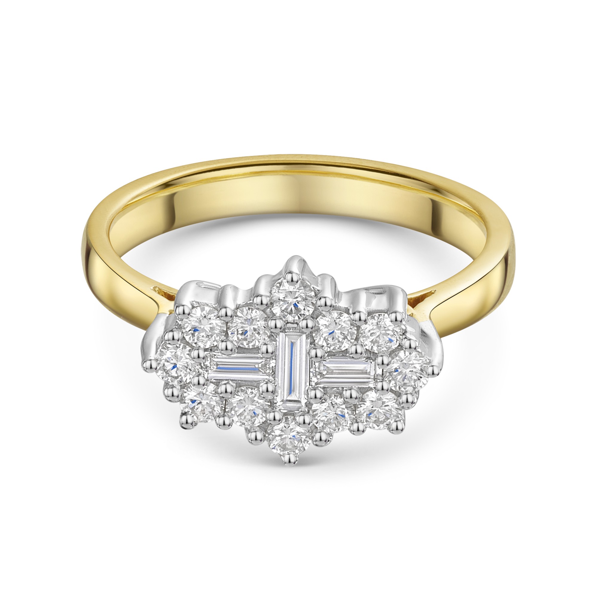 9ct Yellow Gold 0.50ct Baguette & Round Brilliant Multi Cluster Diamond Ring