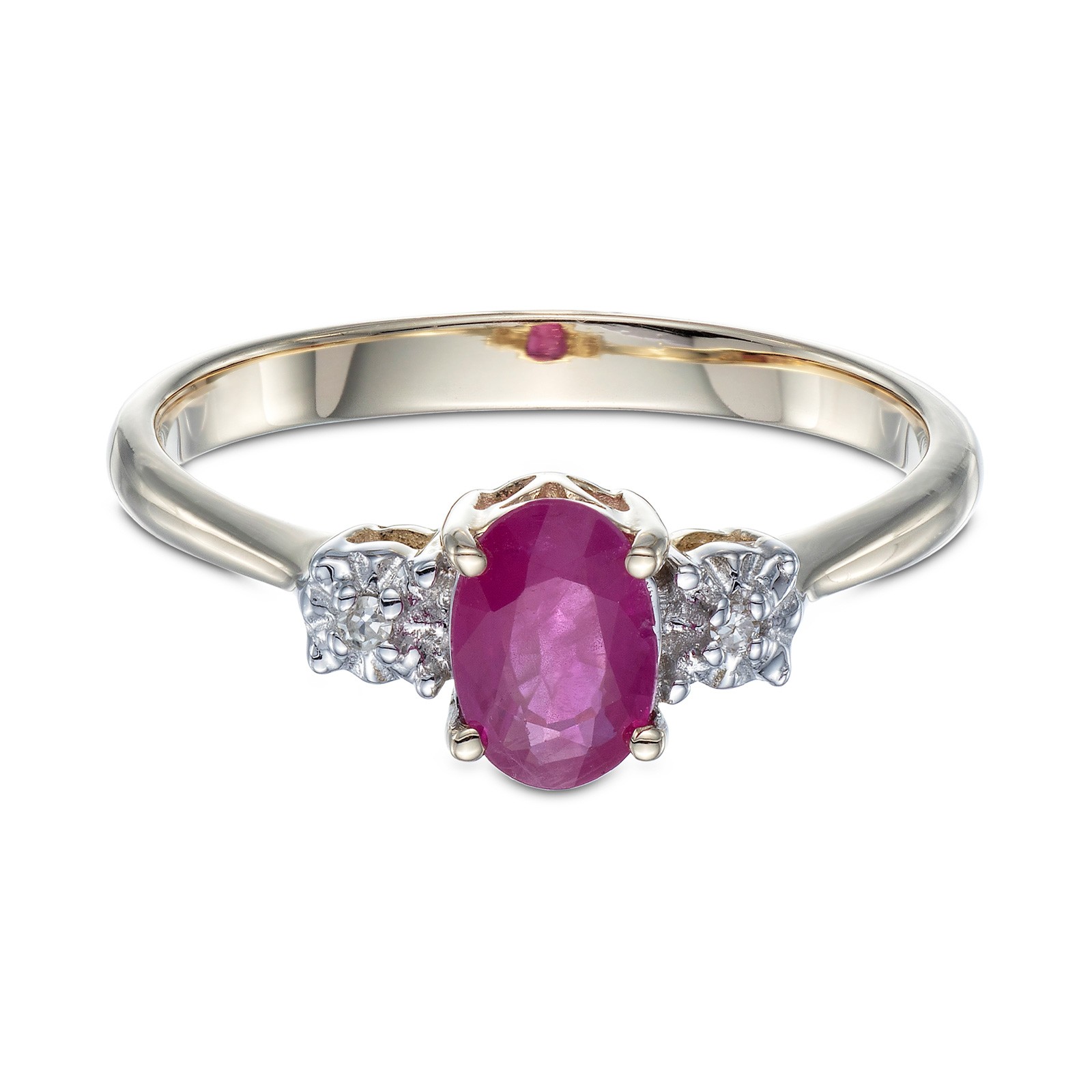 9ct Yellow Gold 0.55ct Oval Ruby and Diamond Three Stone Ring
