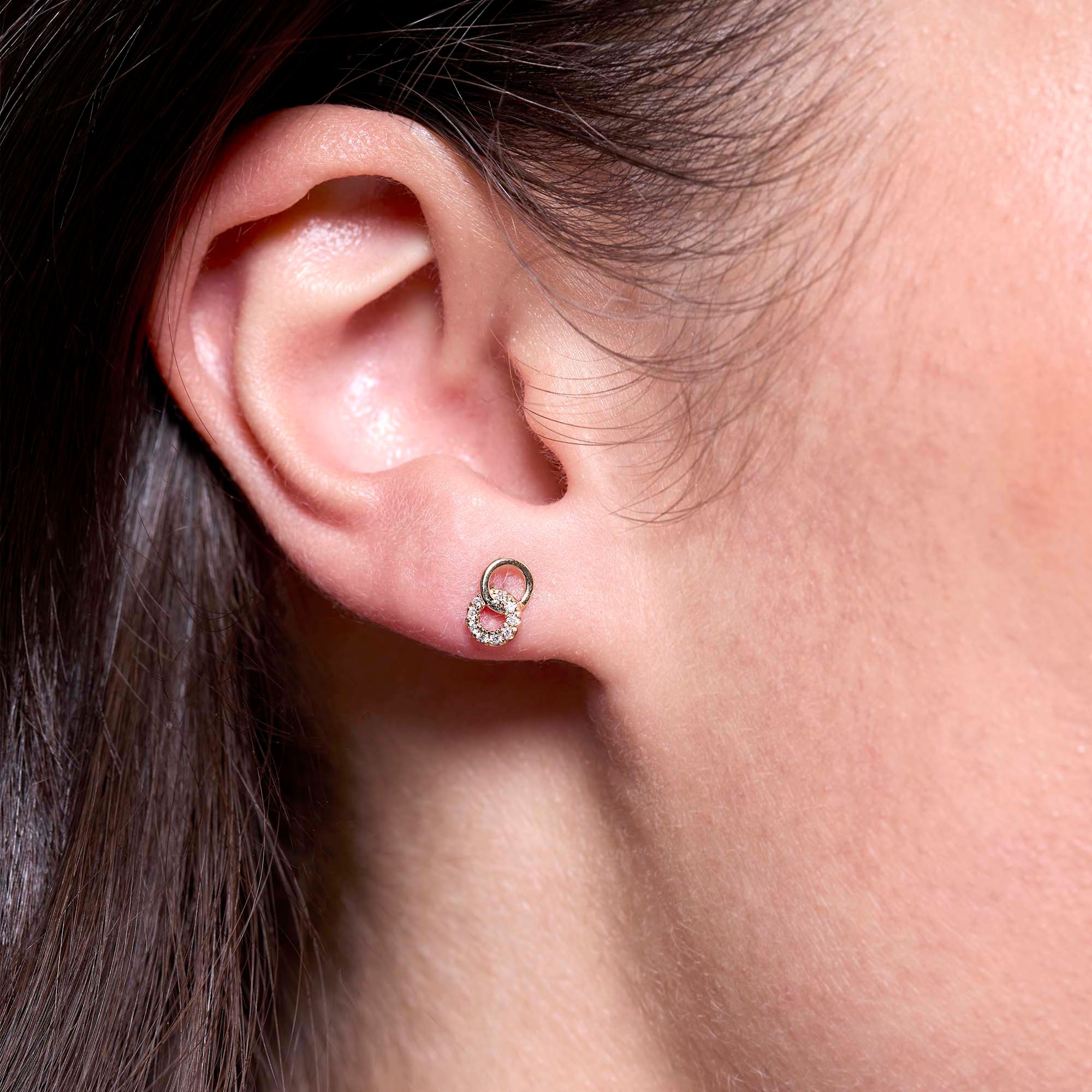 Finely fashioned from luxurious 9ct yellow gold, these earrings epitomise classic charm with a modern twist. The interlocking design symbolises unity and connection, a subtle yet powerful expression of eternal bond and commitment. Each earring features round brilliant cut diamonds, known for superior brilliance and fire, capturing light beautifully. The diamonds, with a combined weight of 0.07 carats, ensures a dazzling effect that is bound to catch every eye.