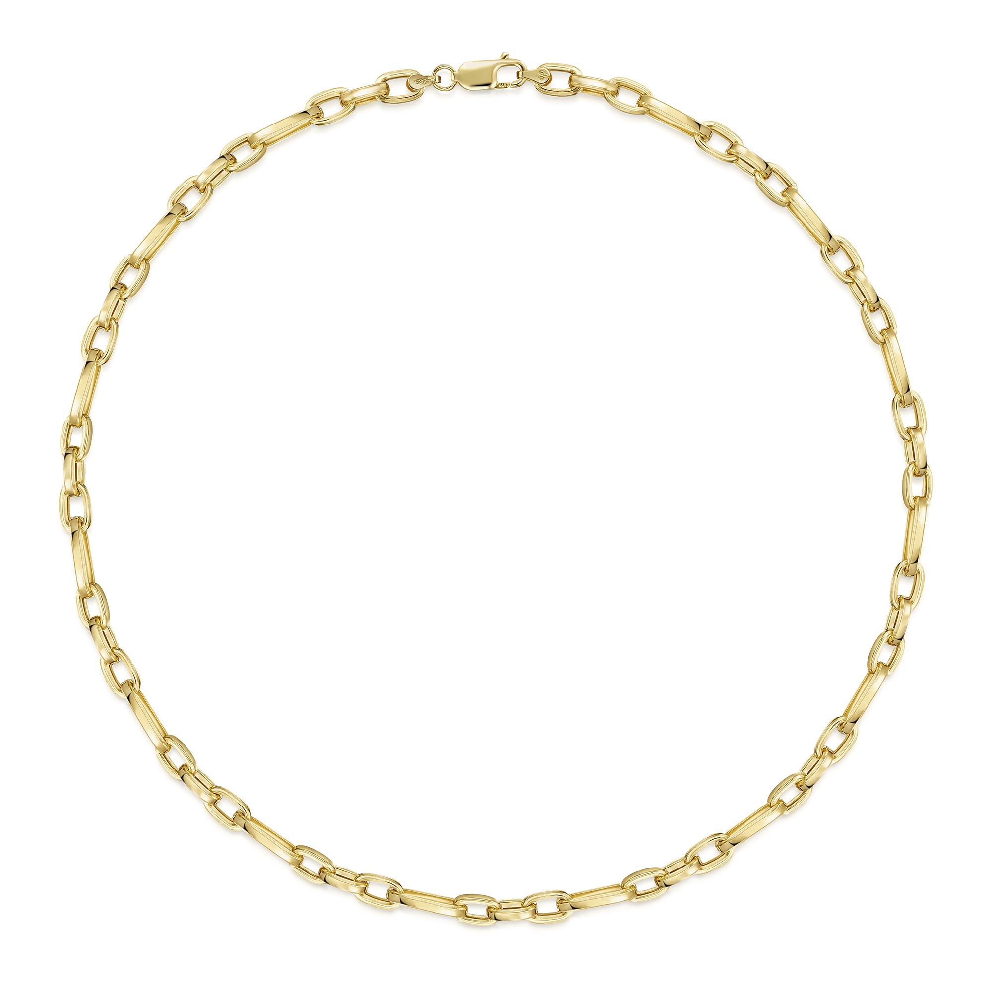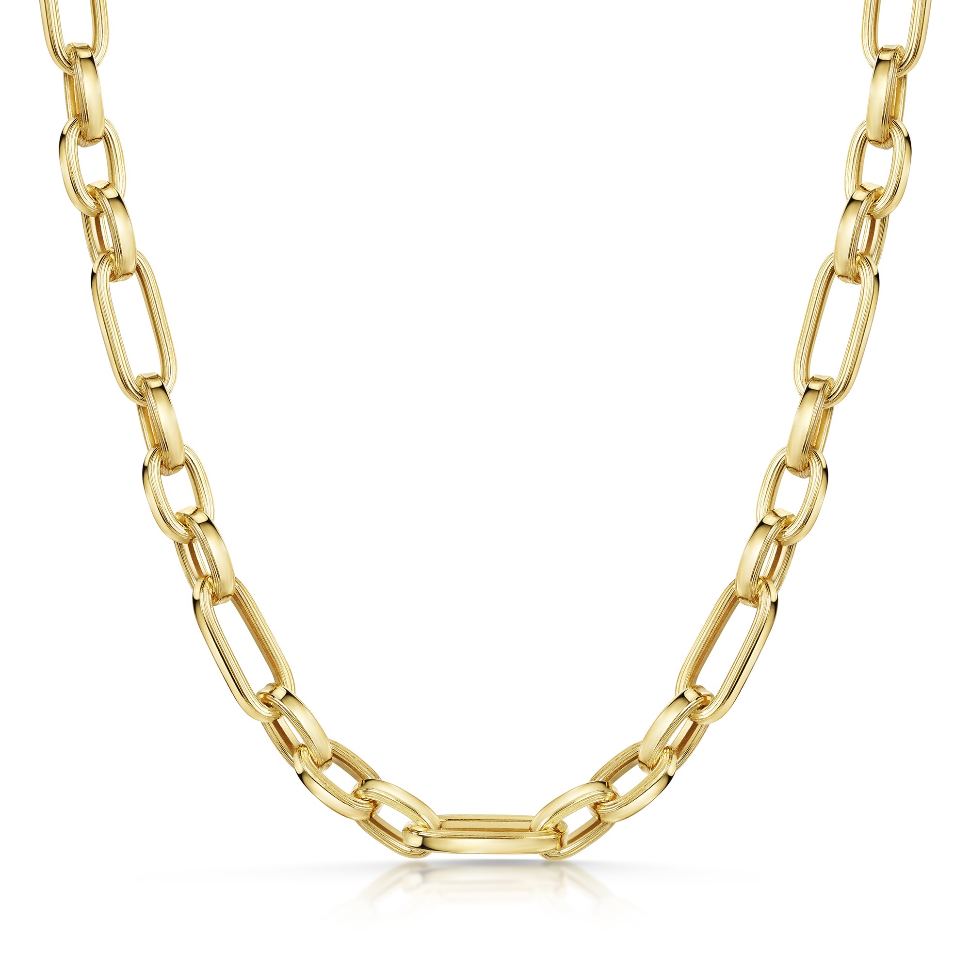 Perfectly designed for her, this Figaro chain combines the durability of traditional gold with modern, refined elegance. The chain features an intricate pattern of alternating links, creating a mesmerising play of light on the skin. It speaks of understated luxury, making it a perfect choice for both daily wear and special occasions.