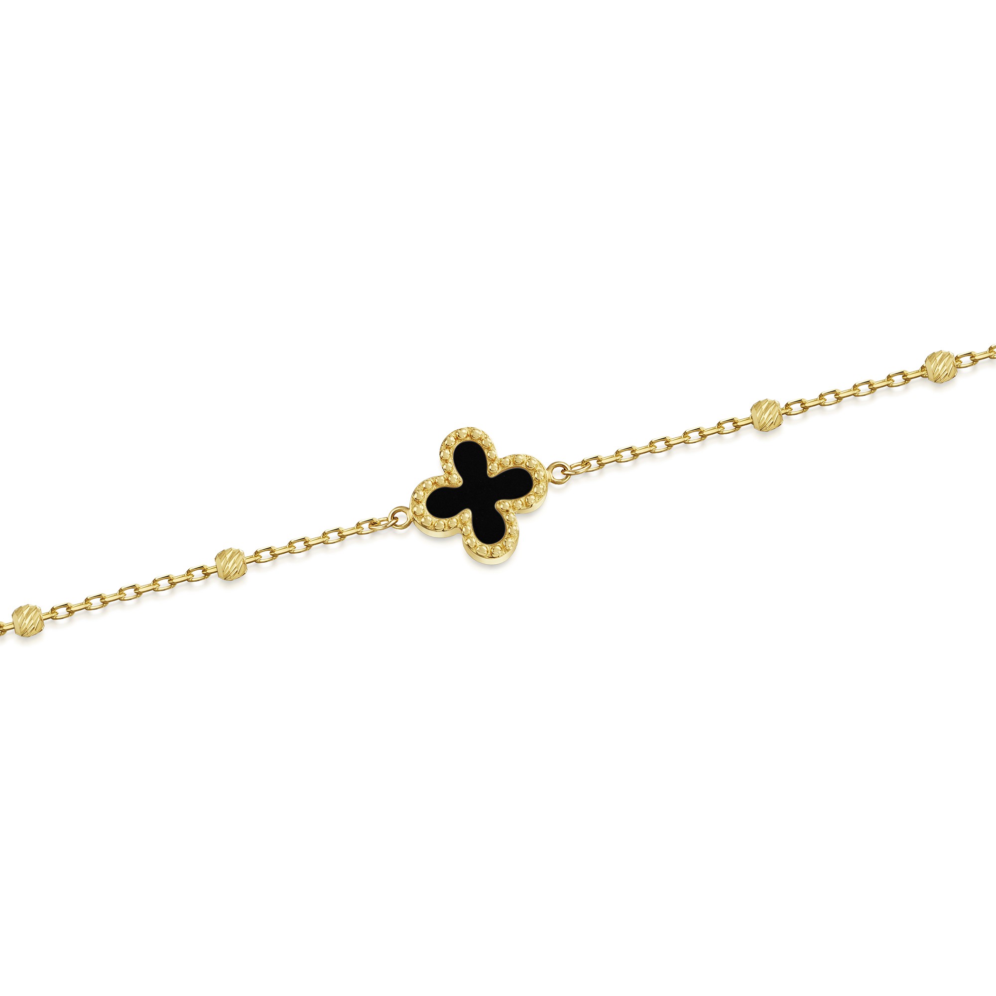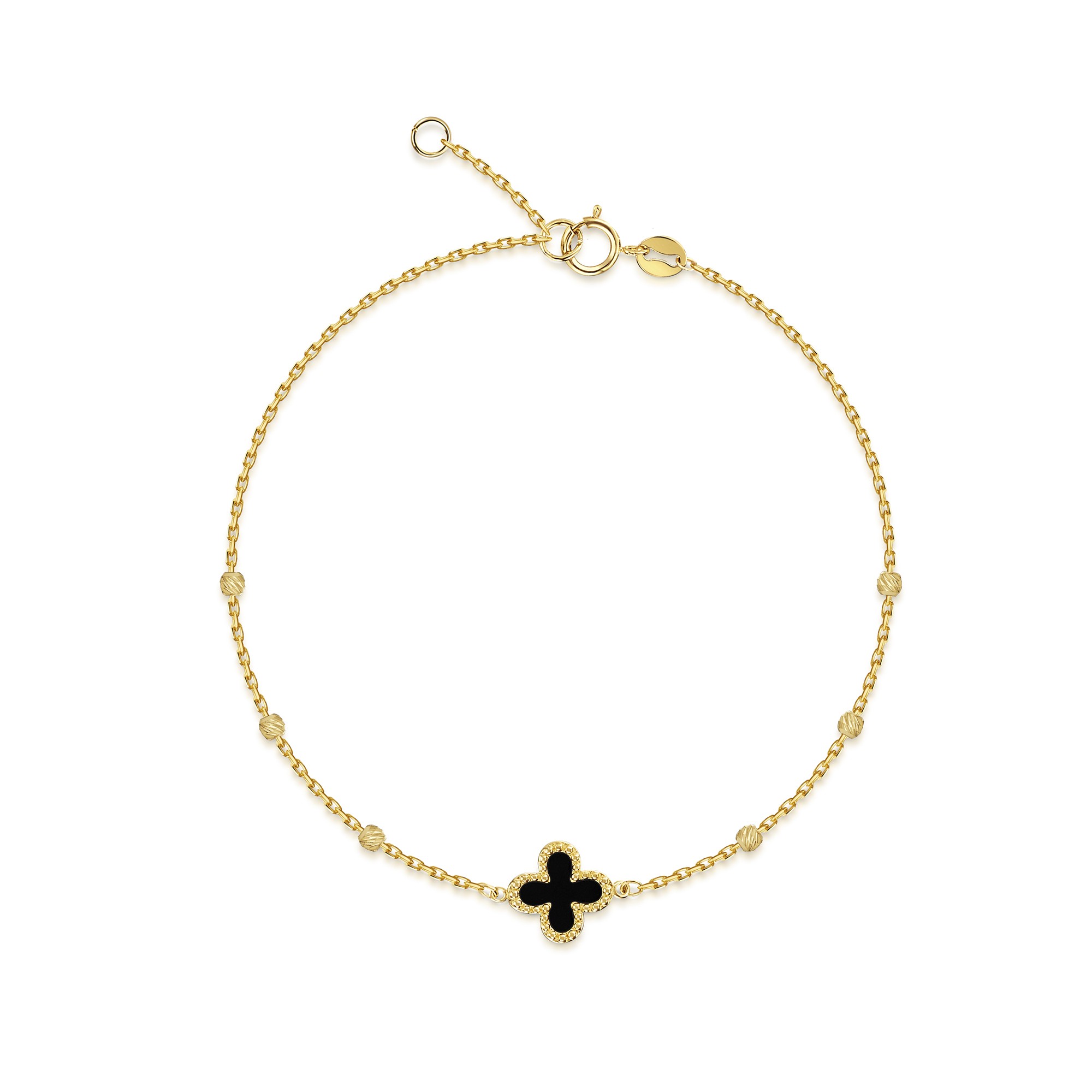 9ct Yellow Gold Black Onyx Clover Bracelet