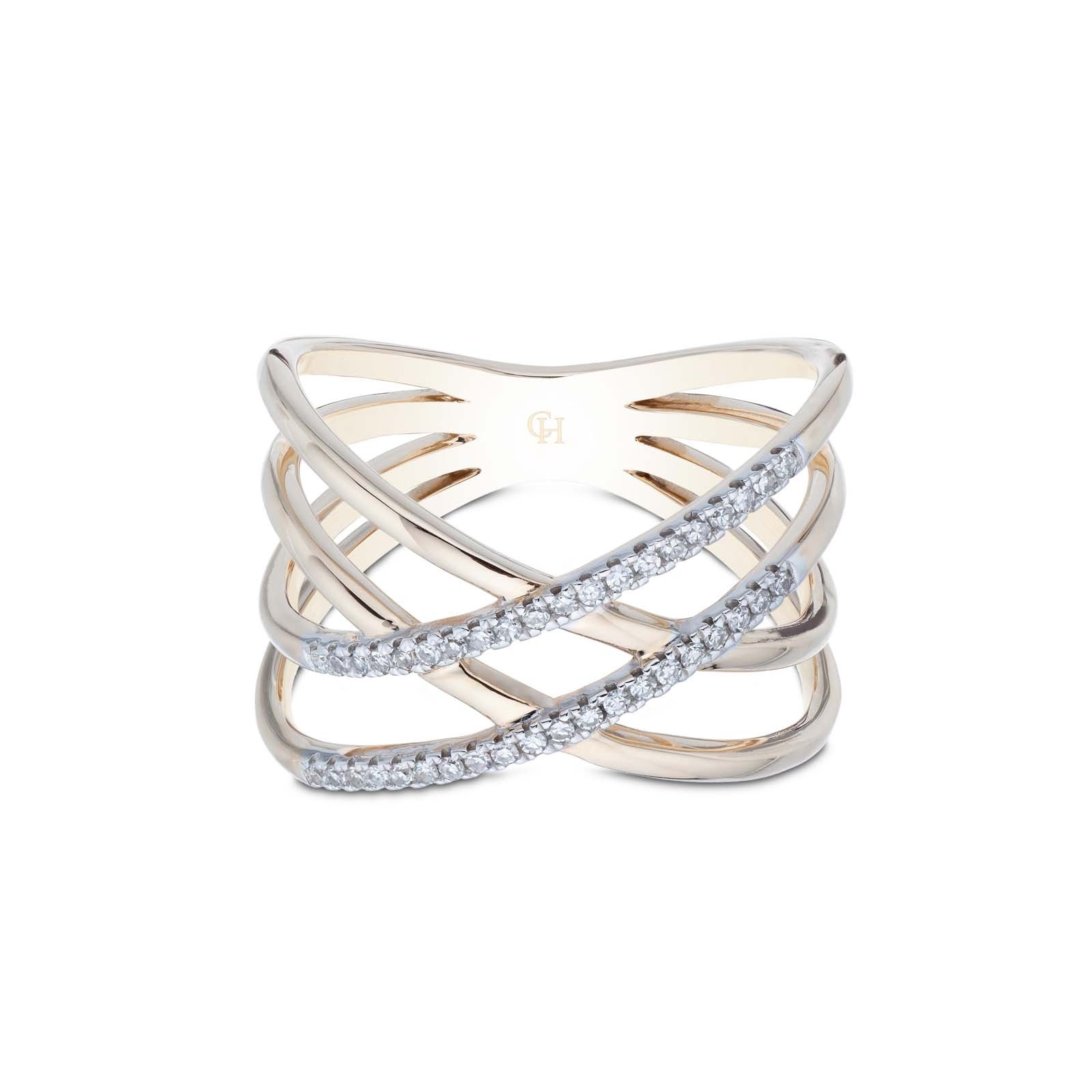 9ct Yellow Gold Brilliant Cut Diamond 0.13ct Cross Over Fancy Band