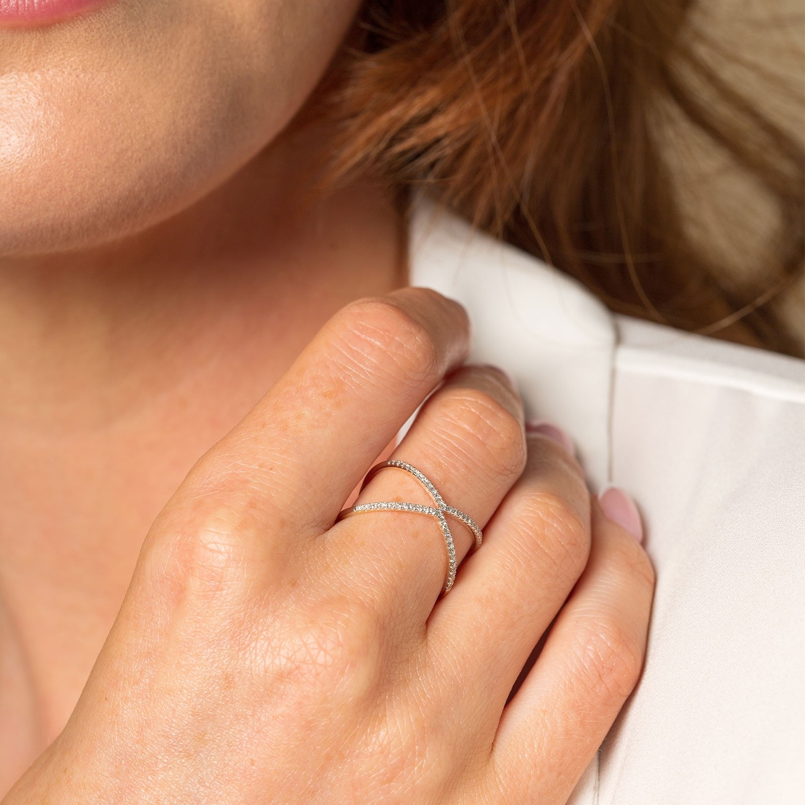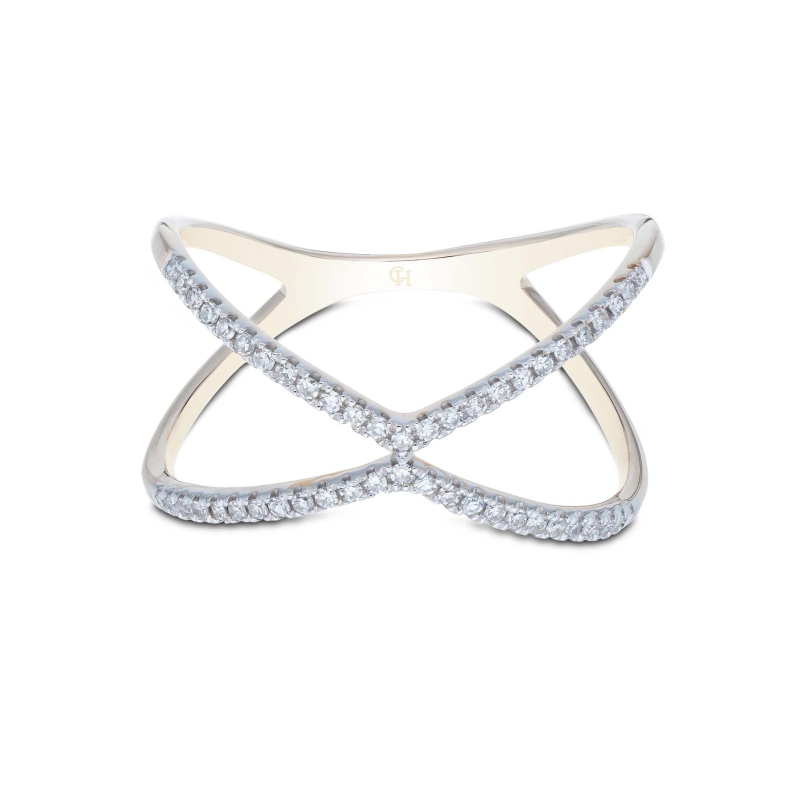 9ct yellow gold round brilliant diamond 0.16ct cross over fancy band
