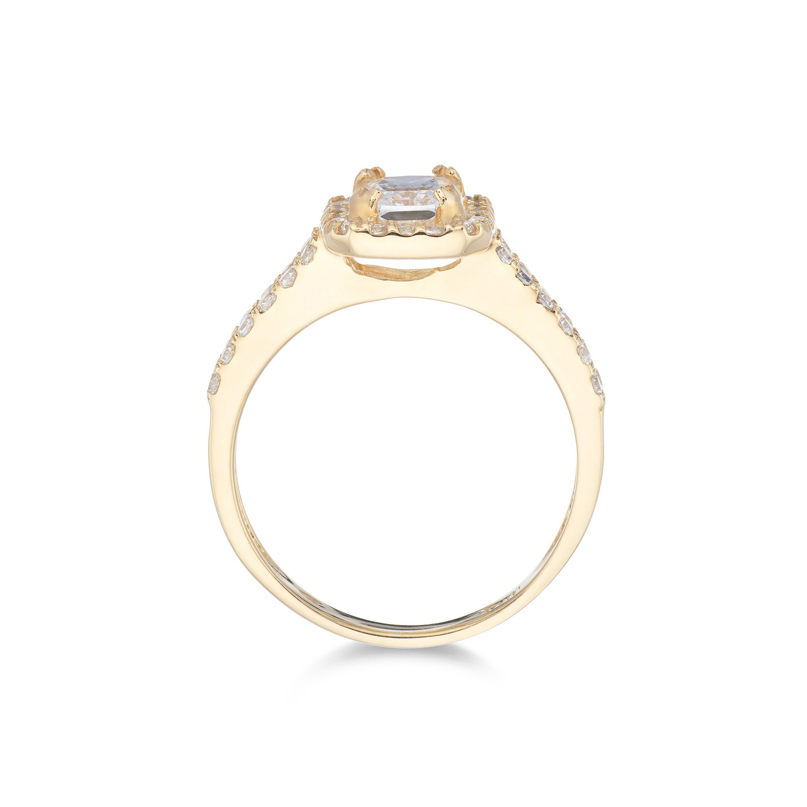 9ct Yellow Gold Cubic Zirconia Emerald Cut Halo Solitaire Ring