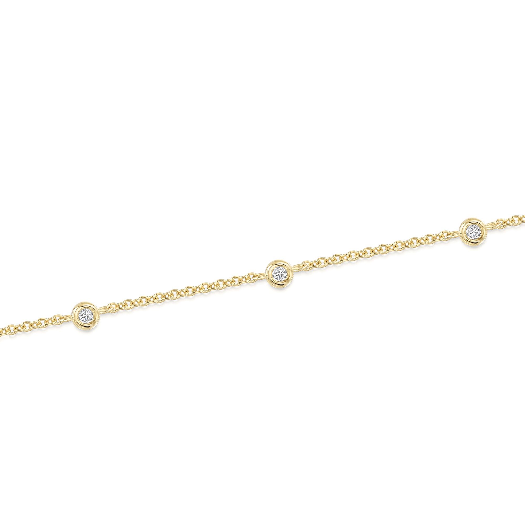 Introducing the 9ct Yellow Gold Cubic Zirconia Staggered Rub Over Bracelet by Chisholm Hunter. This exquisite bracelet, designed for her, showcases a stunning array of round brilliant-cut cubic zirconia stones, creating a sparkling impression. The clear gemstones are elegantly set in a staggered rub-over design, enhancing the bracelet's modern appeal.