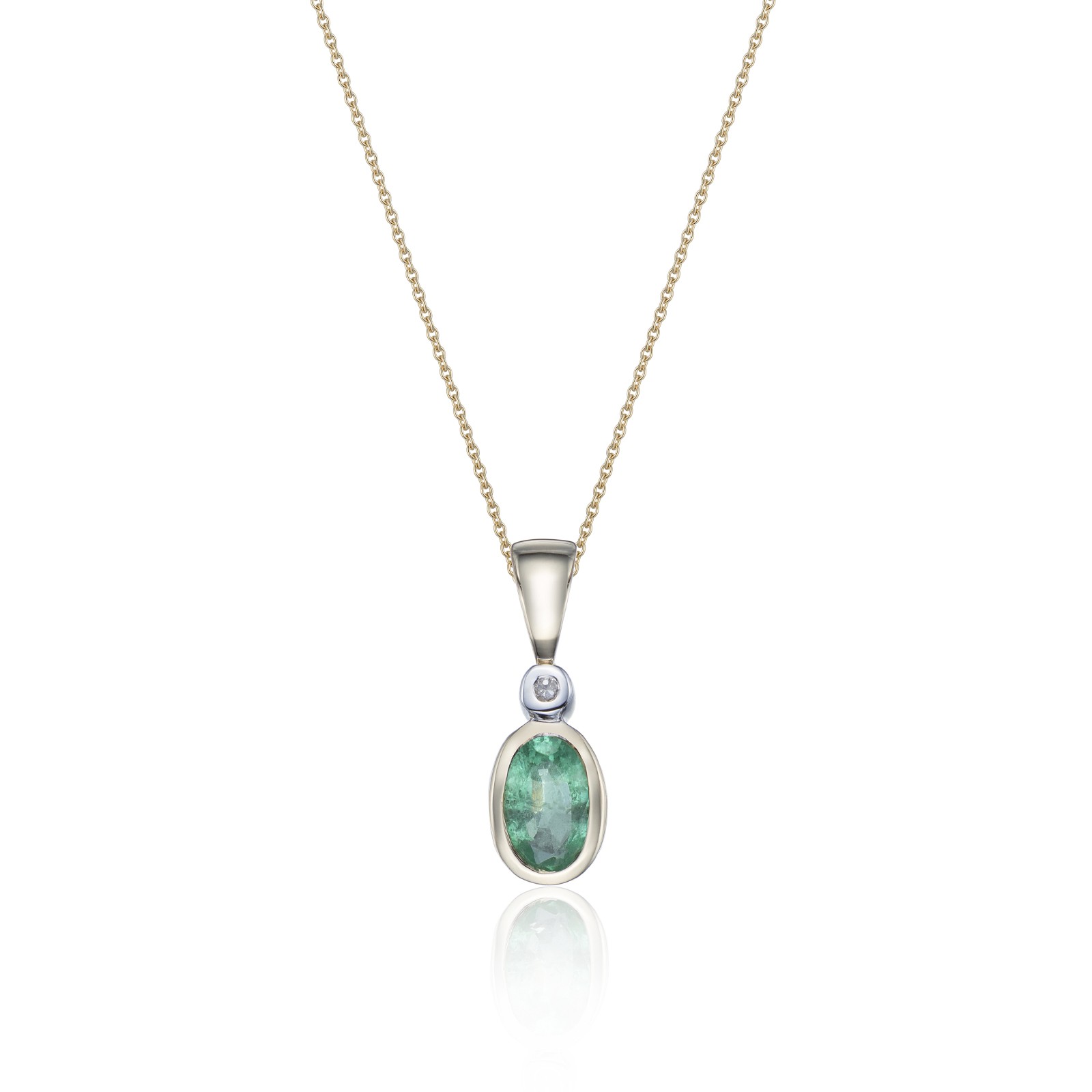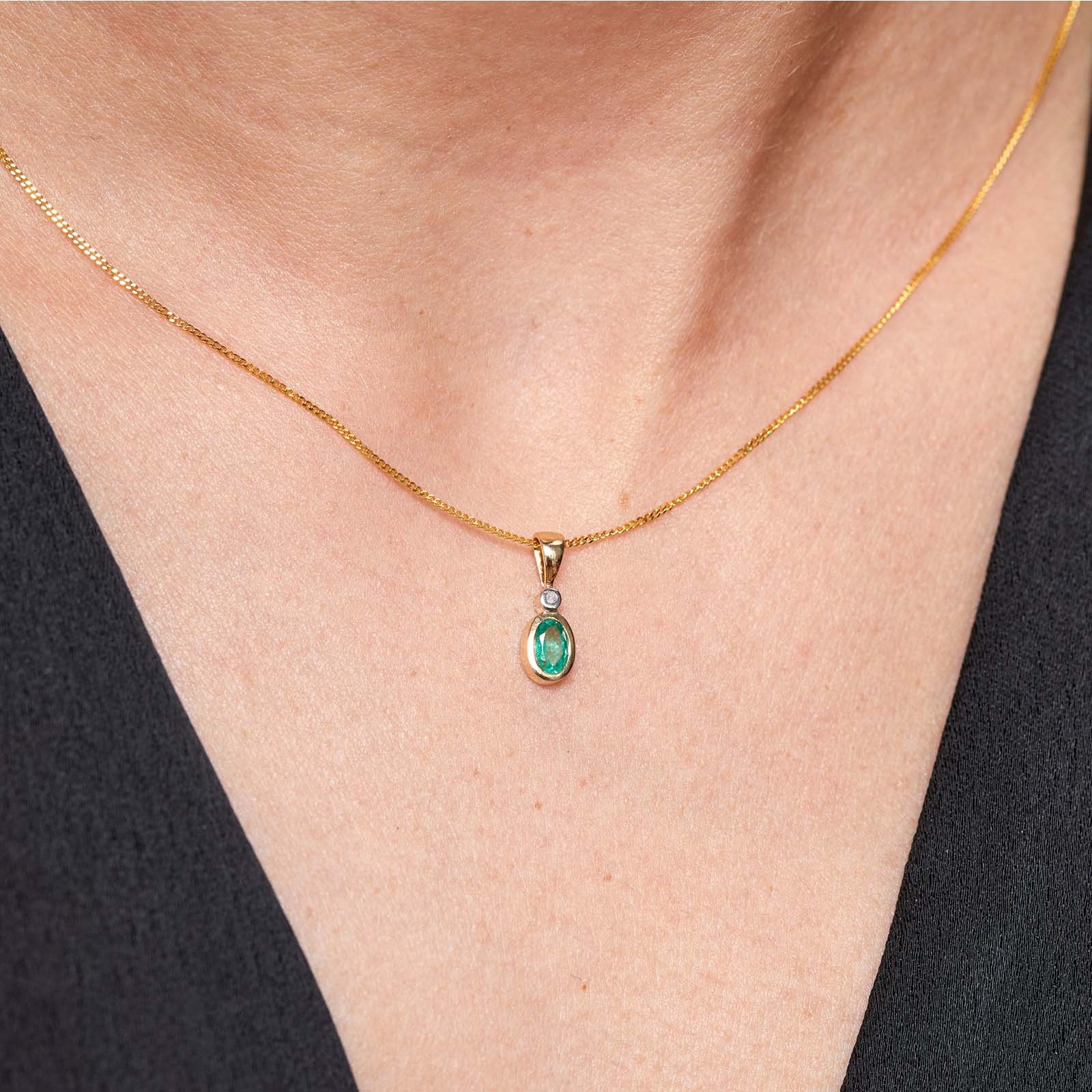 9ct Yellow Gold Diamond and 0.04ct Emerald Pendant
