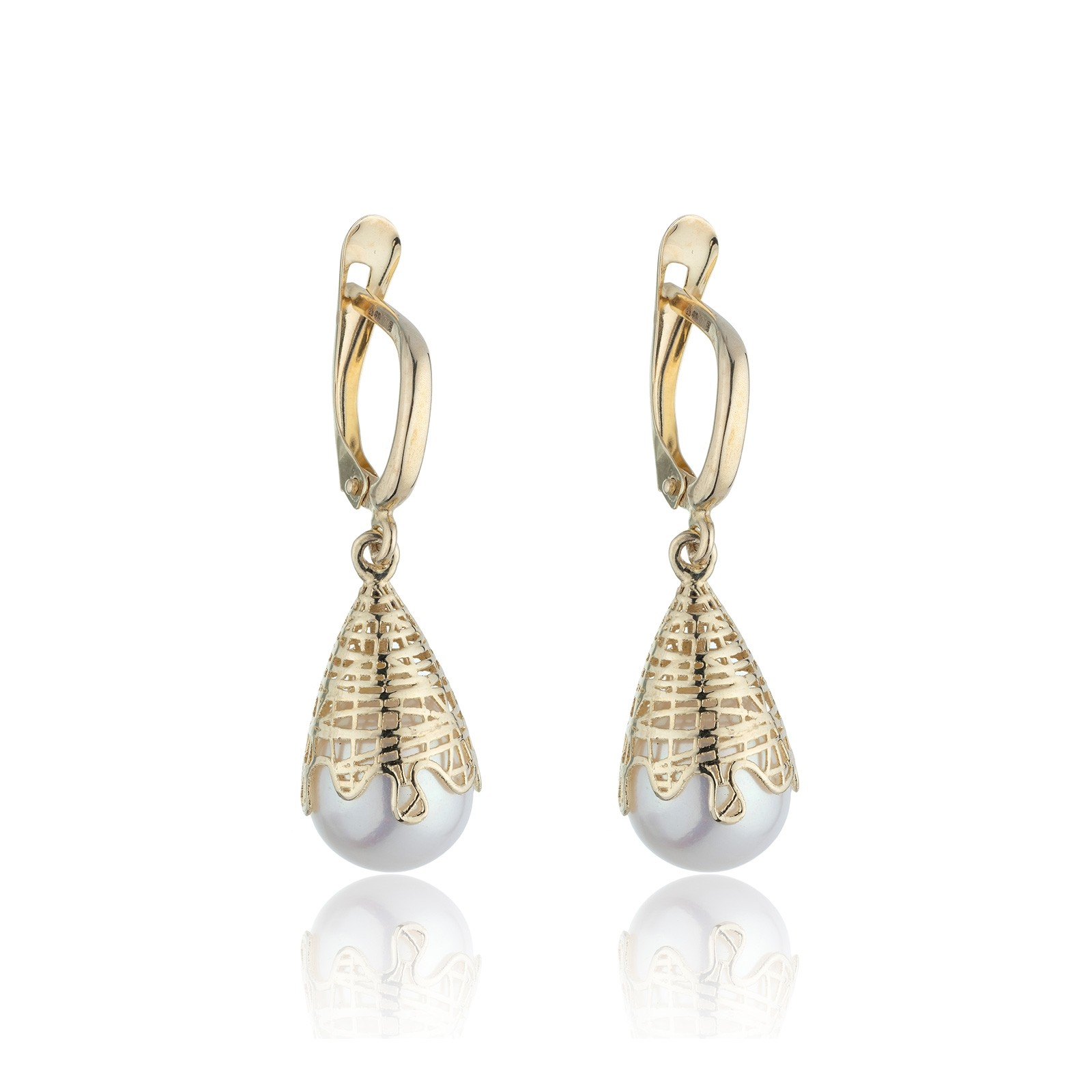 9ct Yellow Gold Freshwater Pearl Cone Drop Earrings