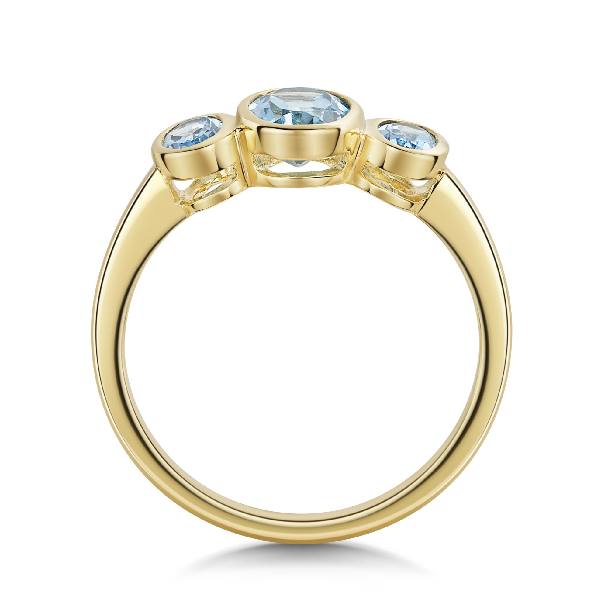 9ct Yellow Gold 1.15ct Oval Blue Topaz Bezel Set 3 Stone Ring