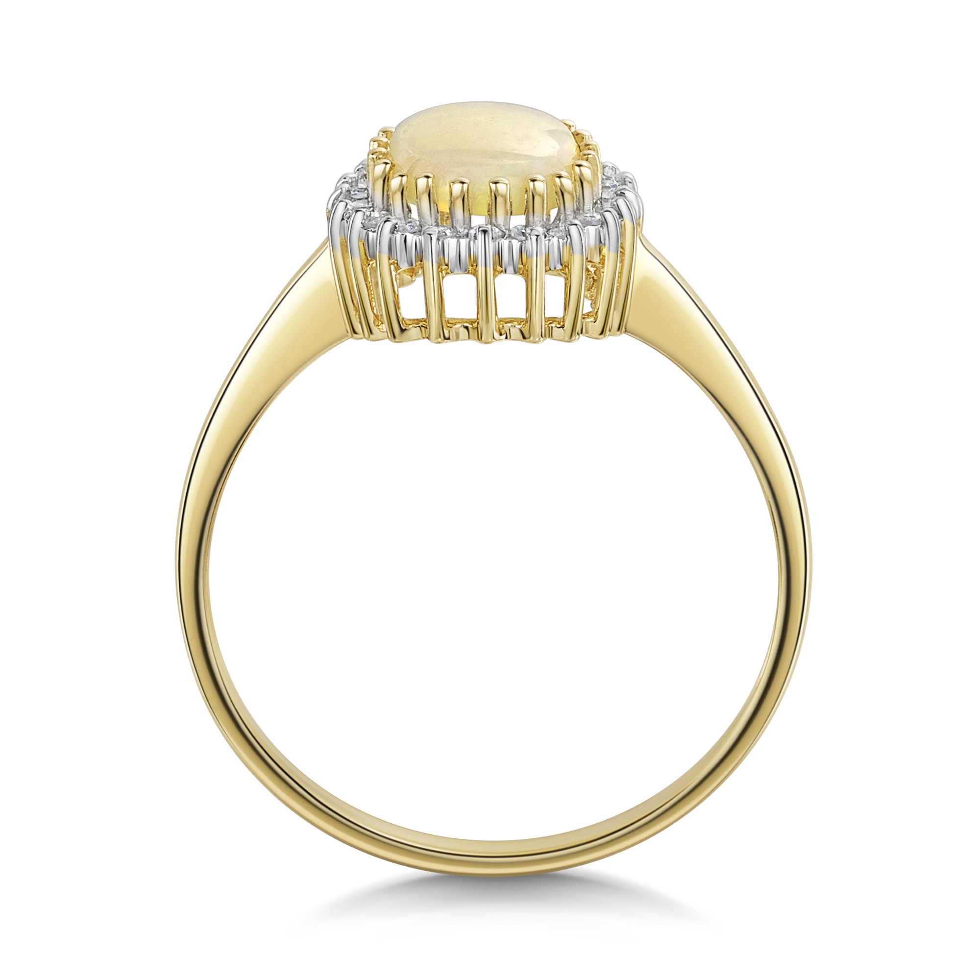 9ct Yellow Gold 0.78ct Oval Opal & Round Brilliant Diamond Halo Ring