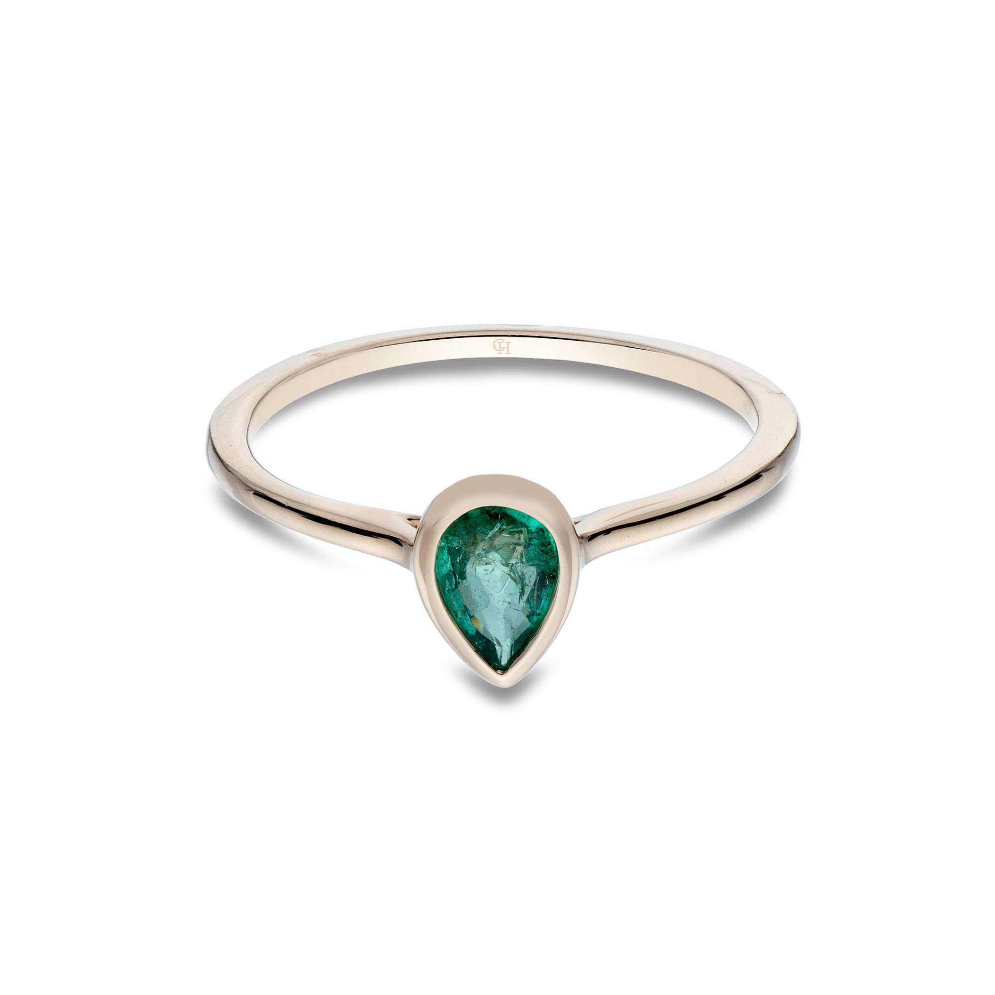 9ct Yellow Gold Pear Cut Emerald 0.40ct Solitaire Ring