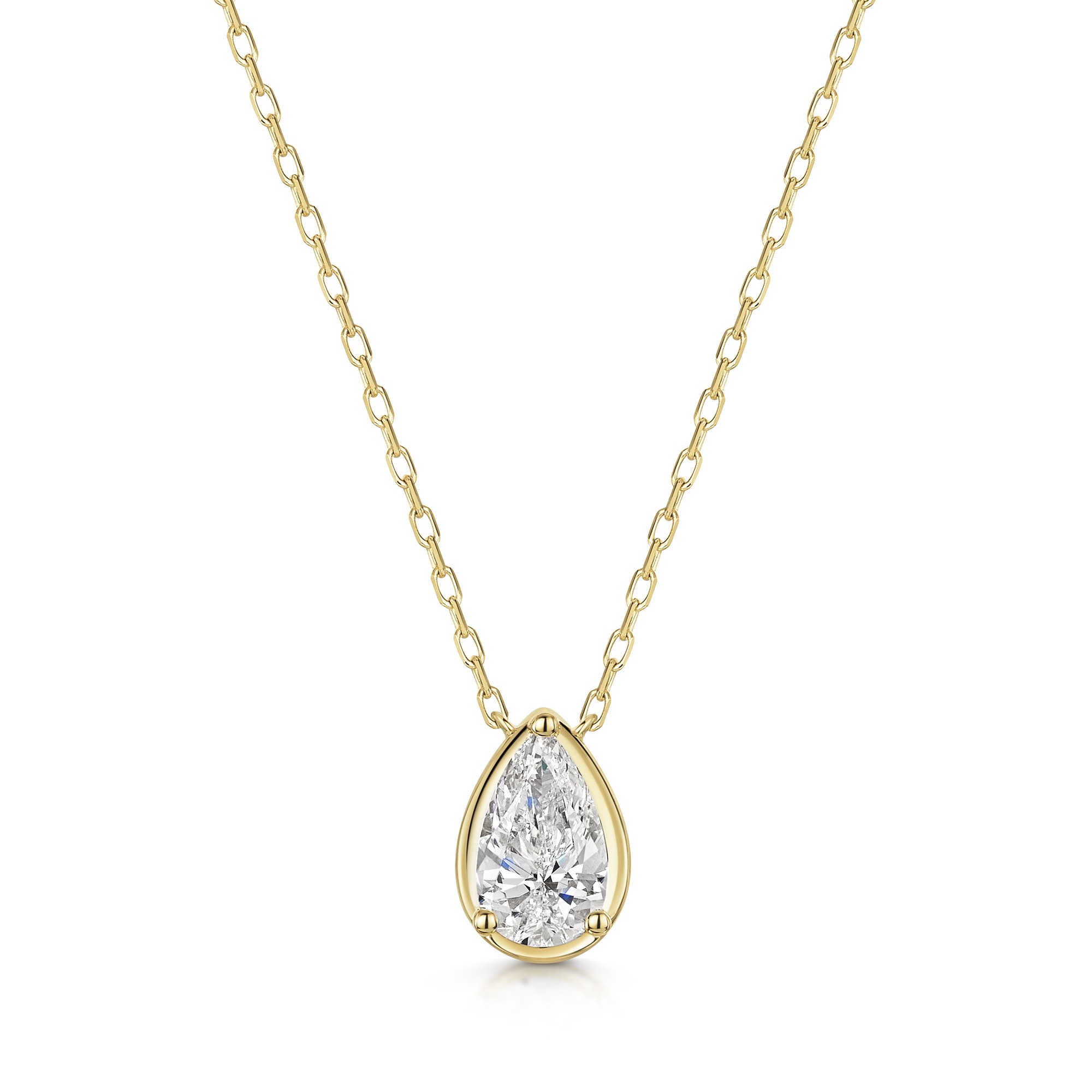 9ct Yellow Gold Pear Shape 1.00ct Lab Diamond Rub Over Pear Shape Pendant