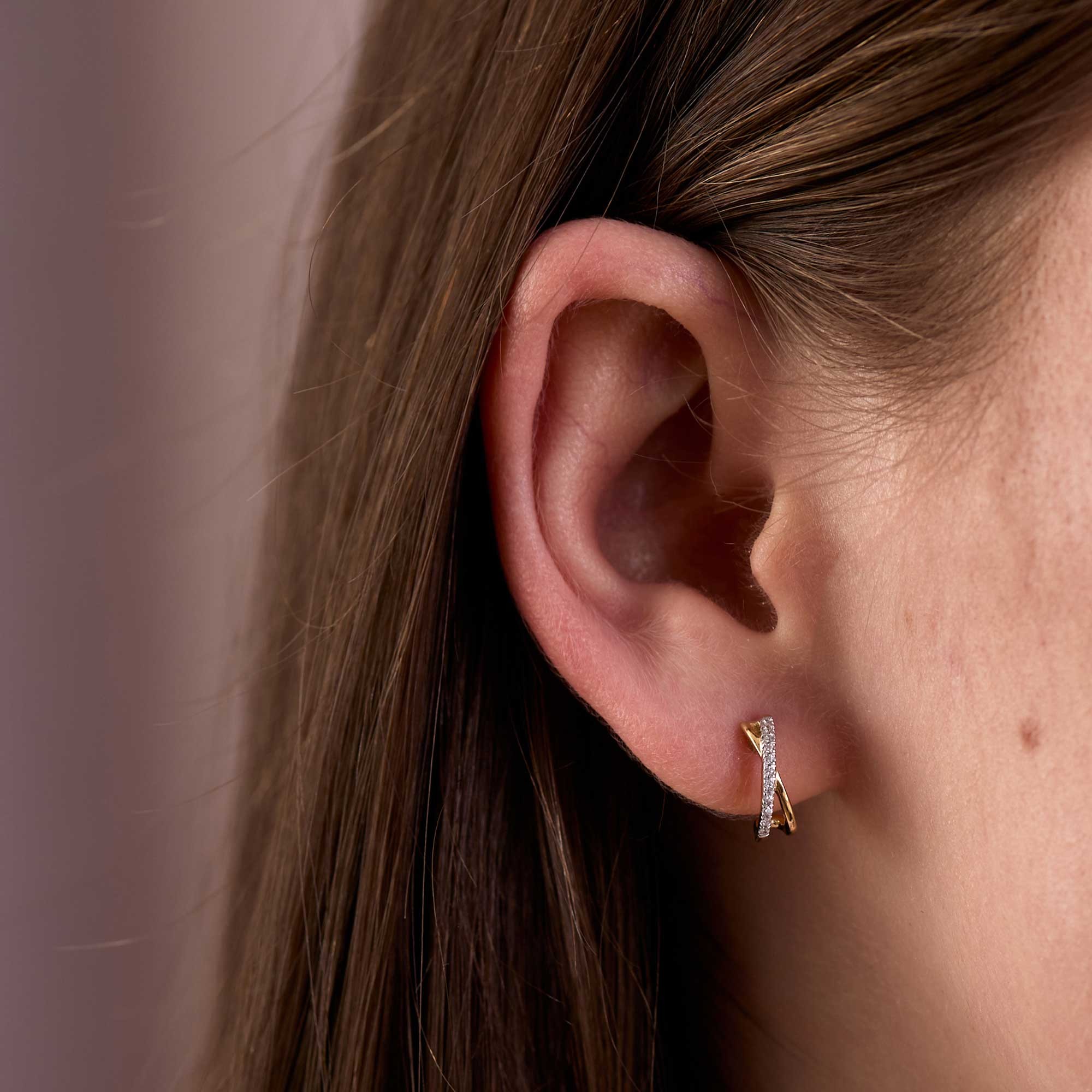These diamond cross over hoop earrings sit neatly on the ear and feel comfortable for long wear. They team well with workwear and evening outfits alike. The secure fastening adds everyday confidence.