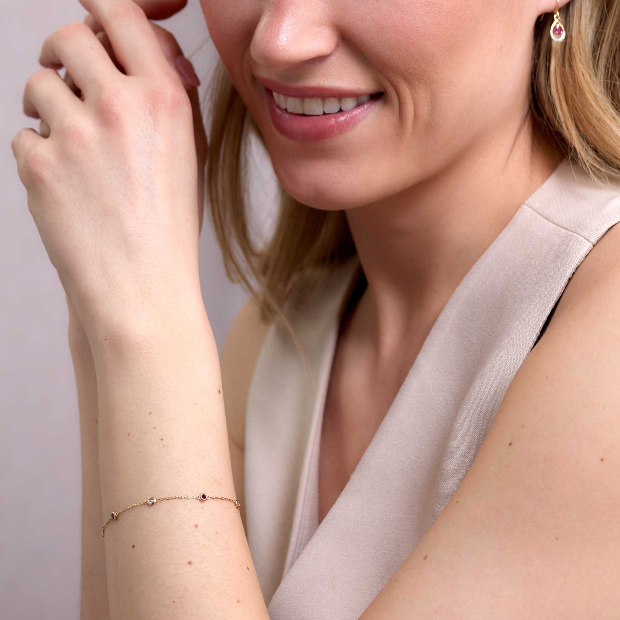 Designed for her, this bracelet suits daily wear and special occasions. Its delicate profile layers easily with other bracelets or sits beautifully on its own. Supplied in Chisholm Hunter presentation packaging, with a Chisholm Hunter Certificate of Authenticity. A thoughtful gift for birthdays and anniversaries, the 9ct Yellow Gold Round Brilliant 0.20ct Diamond & Ruby Bracelet is a refined addition to any collection from Chisholm Hunter.