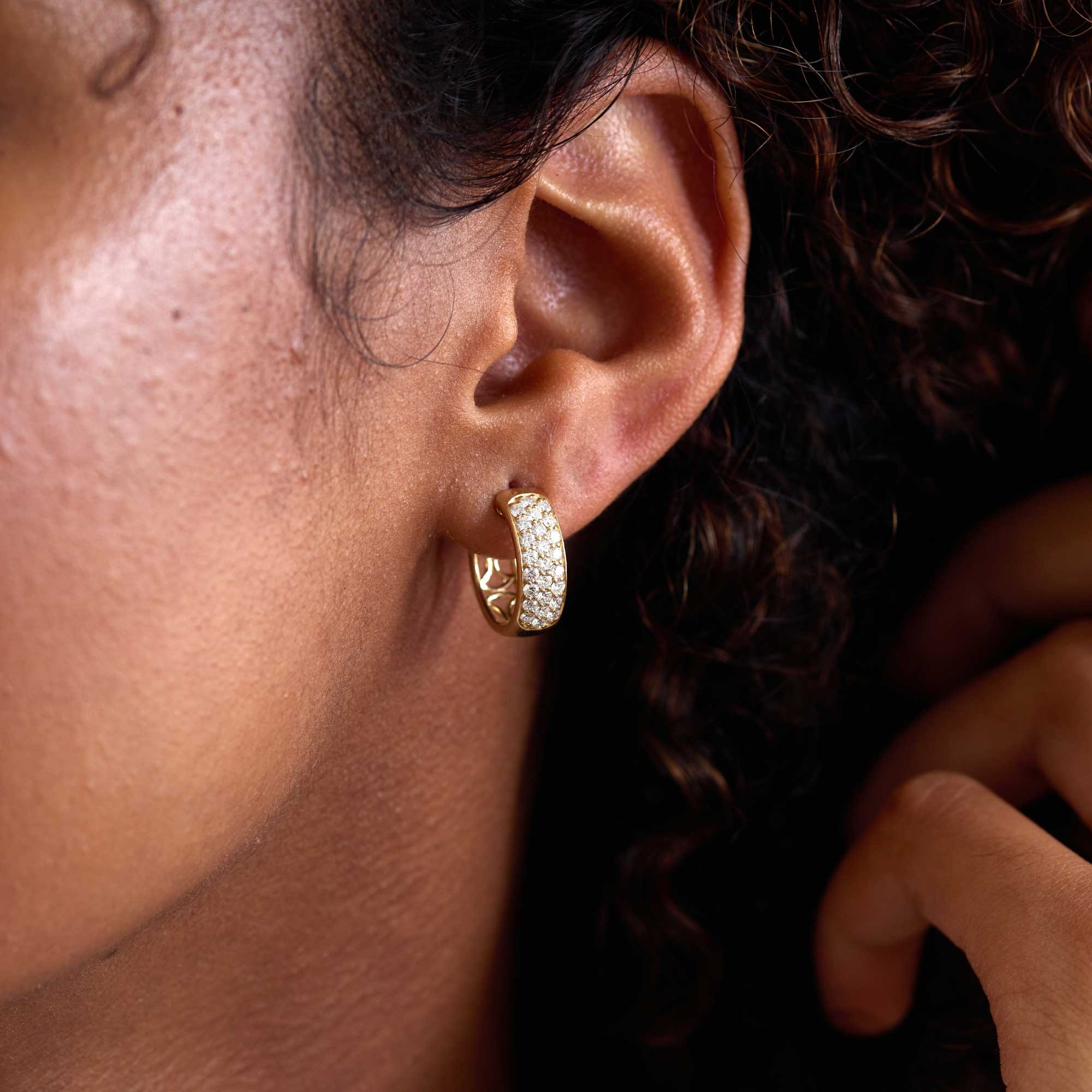 9ct Yellow Gold Round Brilliant 1.00ct Diamond Pave Set Hoop Earrings
