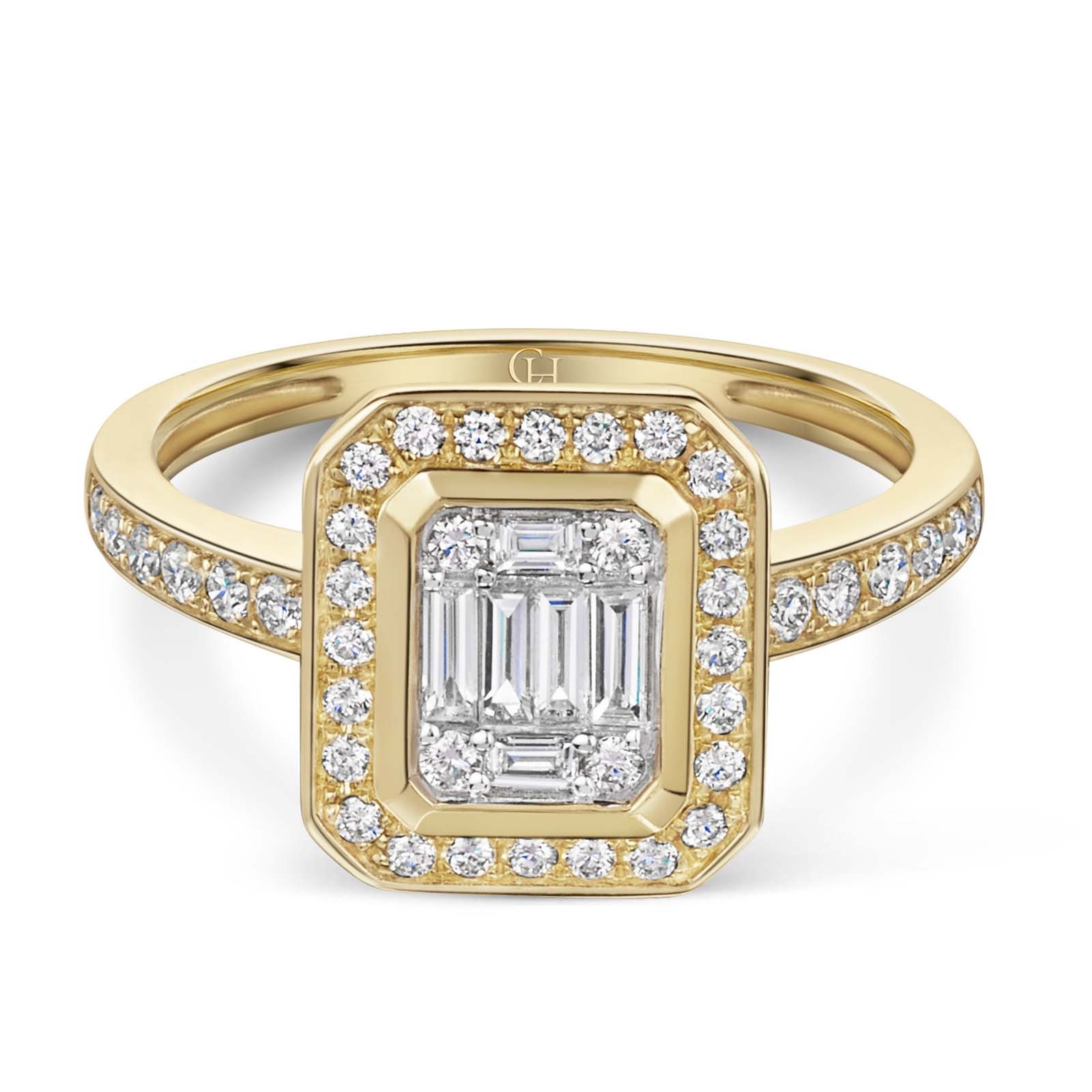 9ct Yellow Gold Round Brilliant And Baguette Cut 0.60ct Diamond Cluster Ring