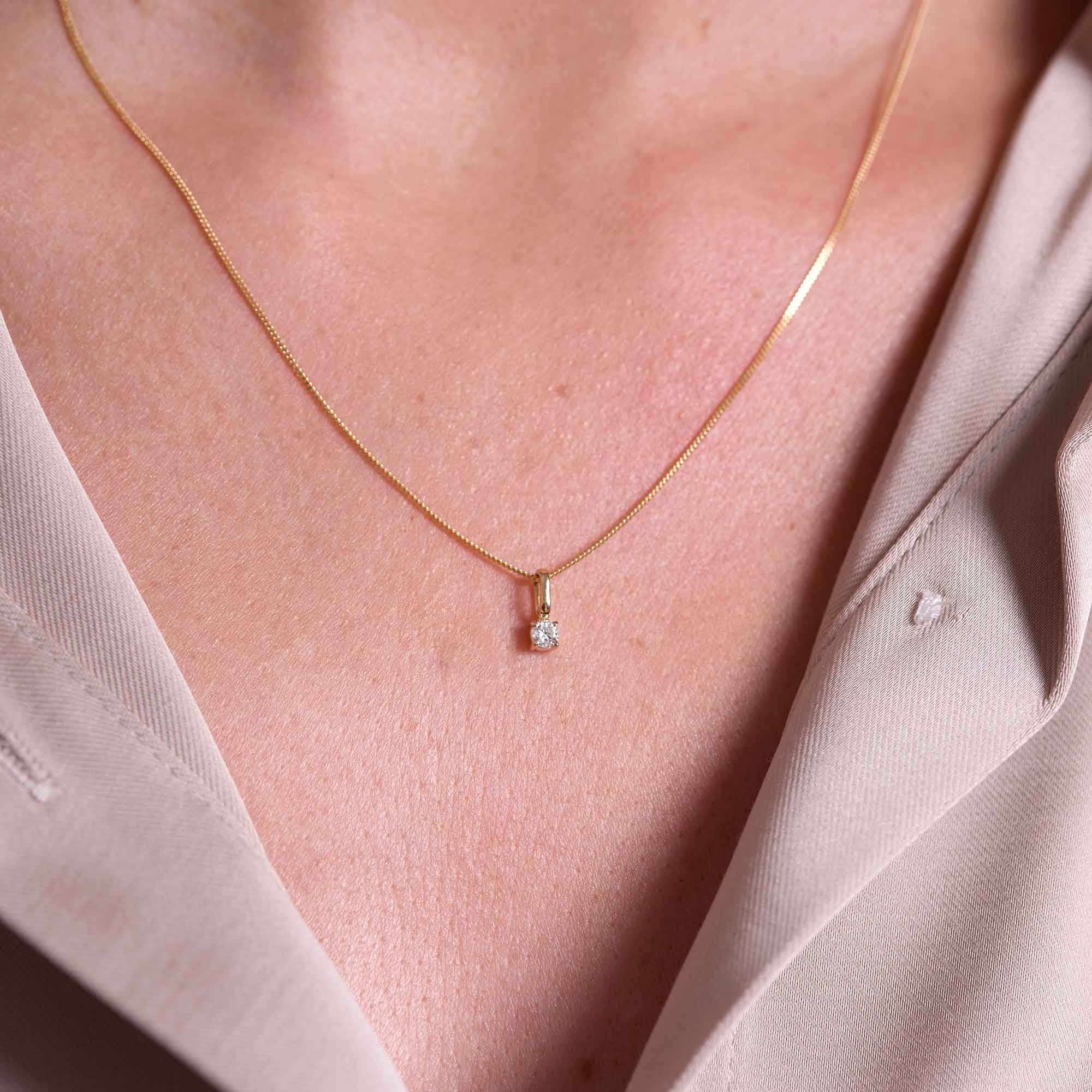 9ct Yellow Gold Round Brilliant Lab Grown Diamond Solitaire Pendant Charm