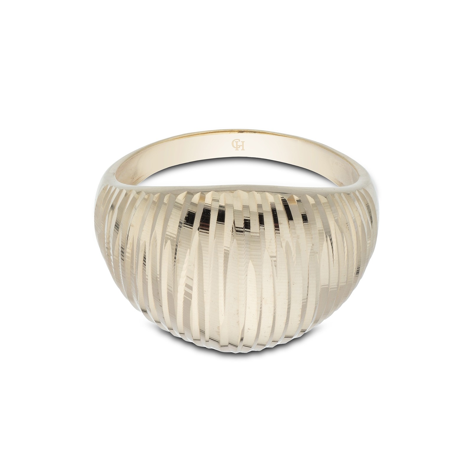 Be on trend for seasons to come with this 9ct Yellow Gold Textured Dome Ring. Beautifully crafted from polished 9ct yellow gold, this dome shaped ring features a large textured area that will create a truly chic look. Stack with more gold rings to build a maximum impact summer look or wear alone for refined elegance. Matching earrings available. Presented in Chisholm Hunter gift packaging.