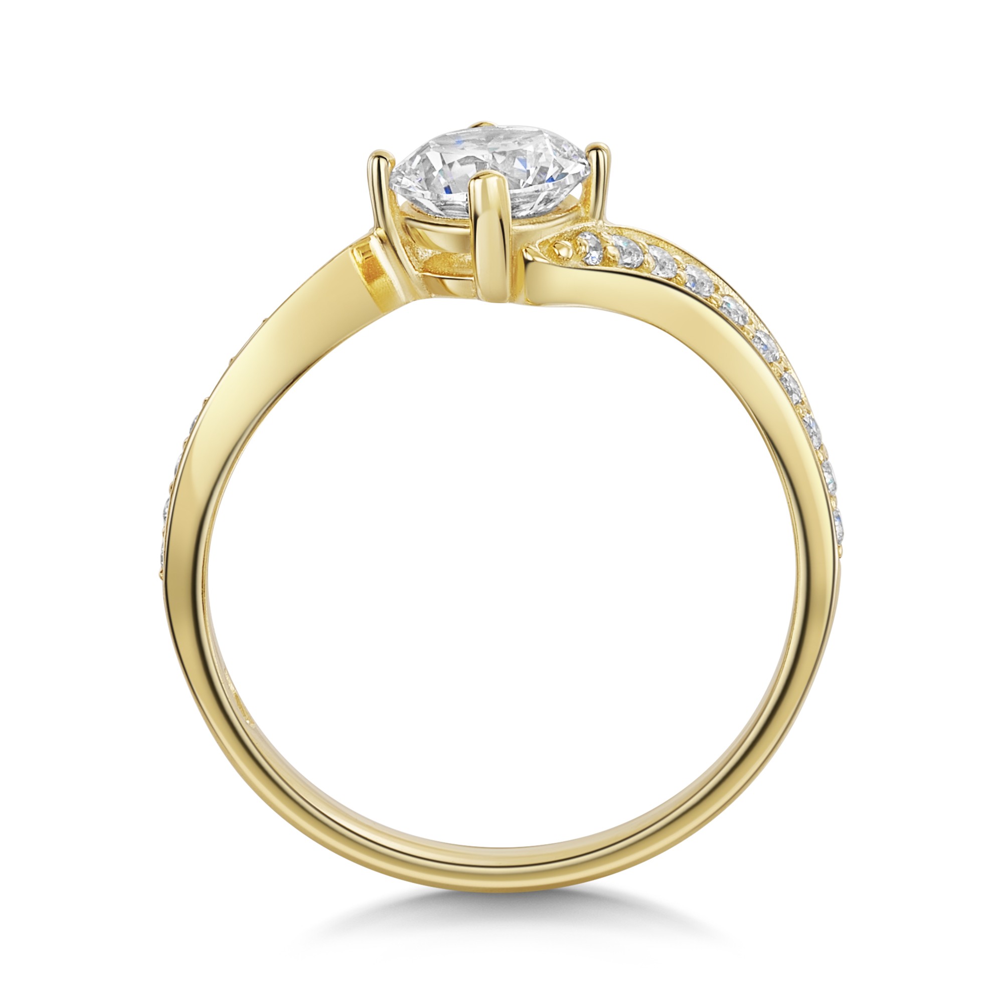 9ct Yellow Gold Twist Round Brilliant Cubic Zirconia Shoulders Ring