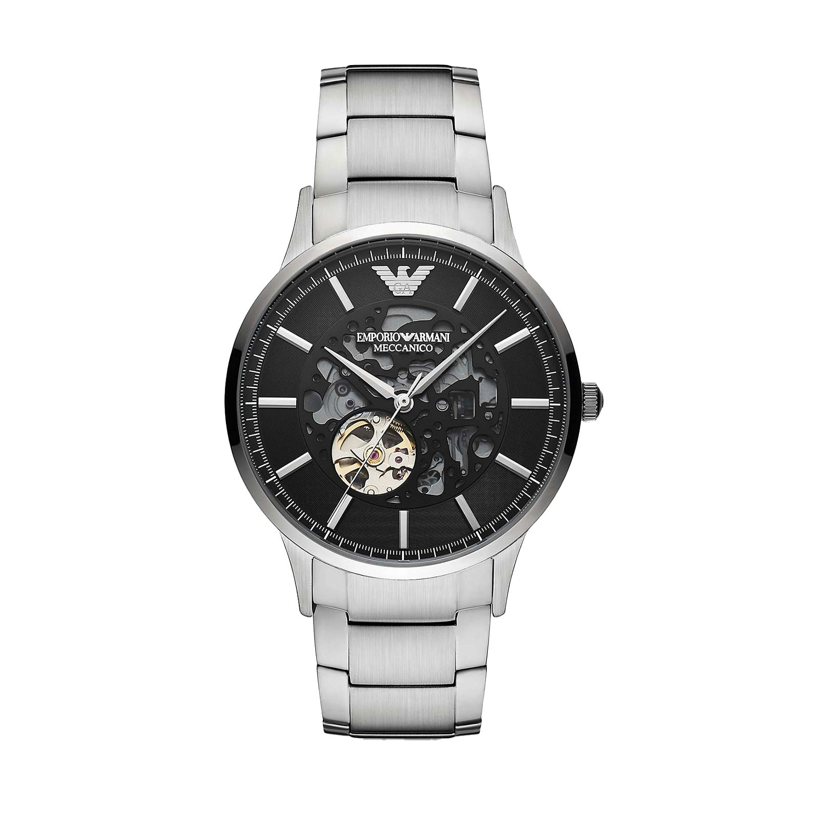 Make a statement with this timeless Armani Renato men’s watch, available at Chisholm Hunter. The 43mm stainless steel case holds an impressive multilayer dial, sunray and CD cut texture that features the skeleton styling to reveal the interior of the watch. Presented on a metal bracelet strap with an automatic movement, this watch is an excellent everyday wear for the modern gentleman.