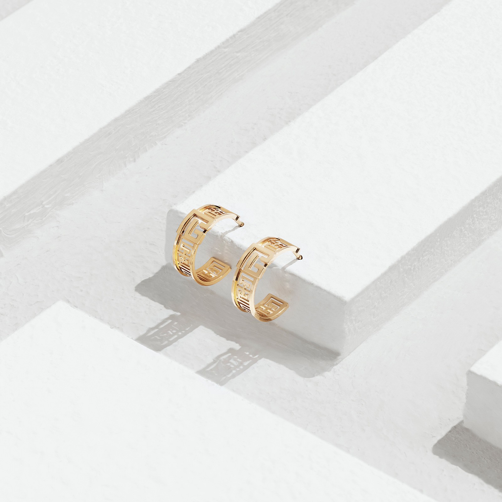18ct Yellow Gold Labyrinth Frieze Single Hoop Earring ABAJ02ER00001