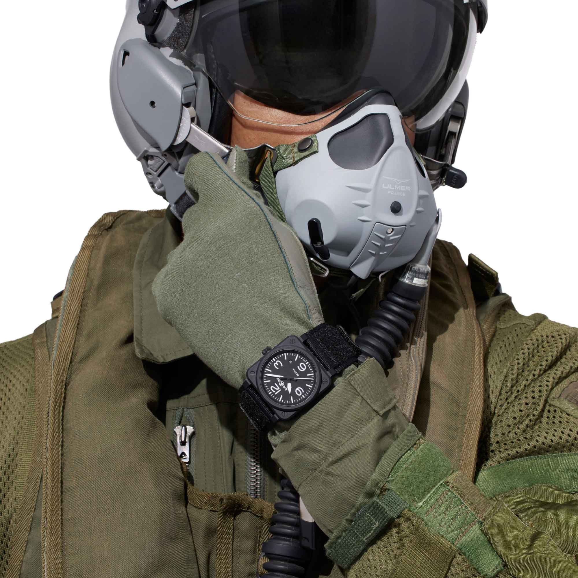 Featuring a ceramic case, a material that holds a privileged position in the aerospace sector – and particularly the space arena – for the manufacture of parts subject to high temperatures, exposure to acids, corrosion and erosion. Bell & Ross has reworked ceramic in its Swiss workshops to develop a special manufacturing process that enhances the intrinsic qualities of this remarkable material: this ceramic is scratchproof, lighter and its colour is unalterable.