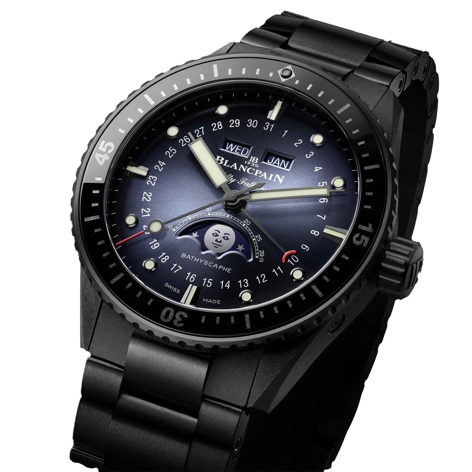 Experience the blend of tradition and modernity with the Blancpain Fifty Fathoms Bathyscaphe Quantième Complet Phases 44mm Watch 5054 0140 01S.