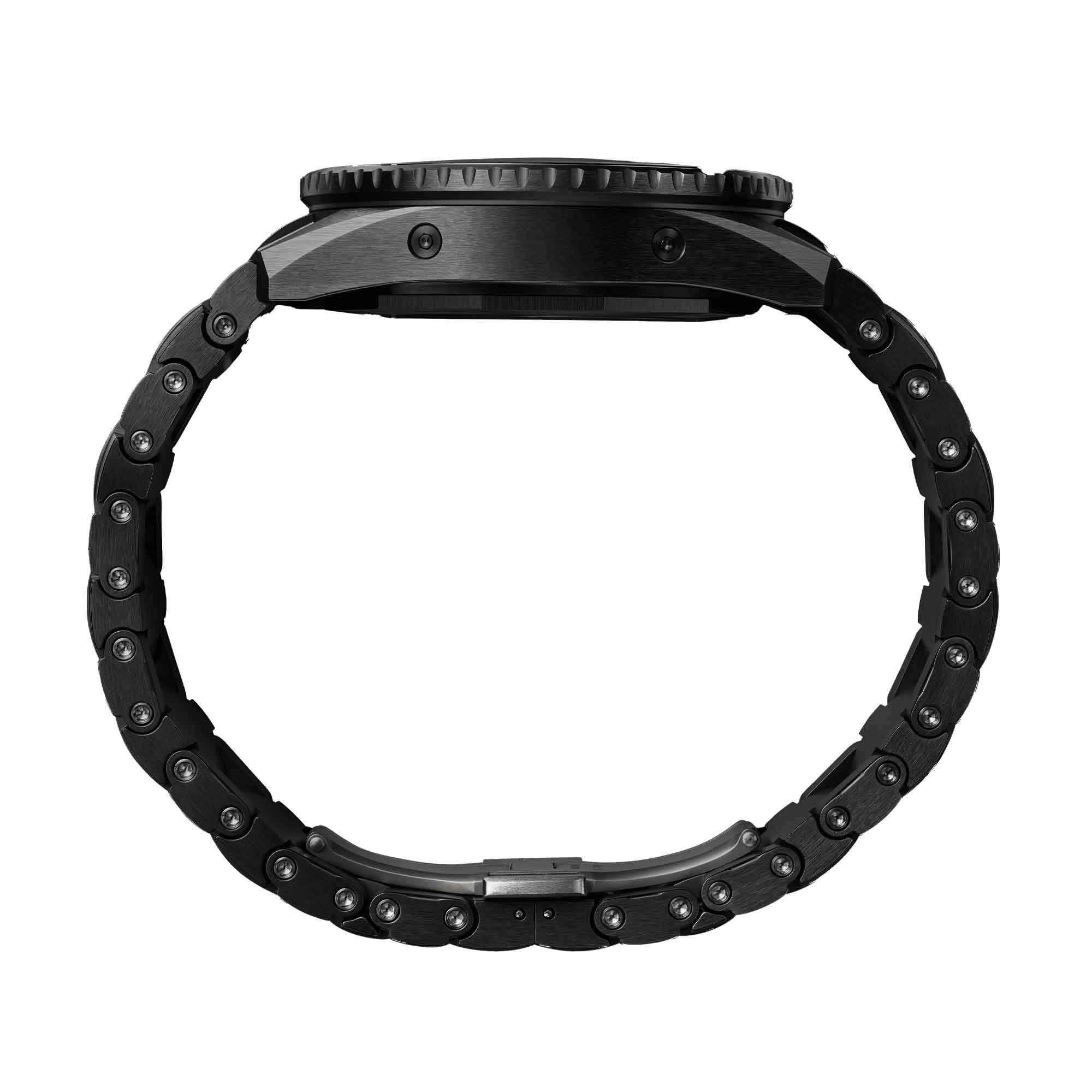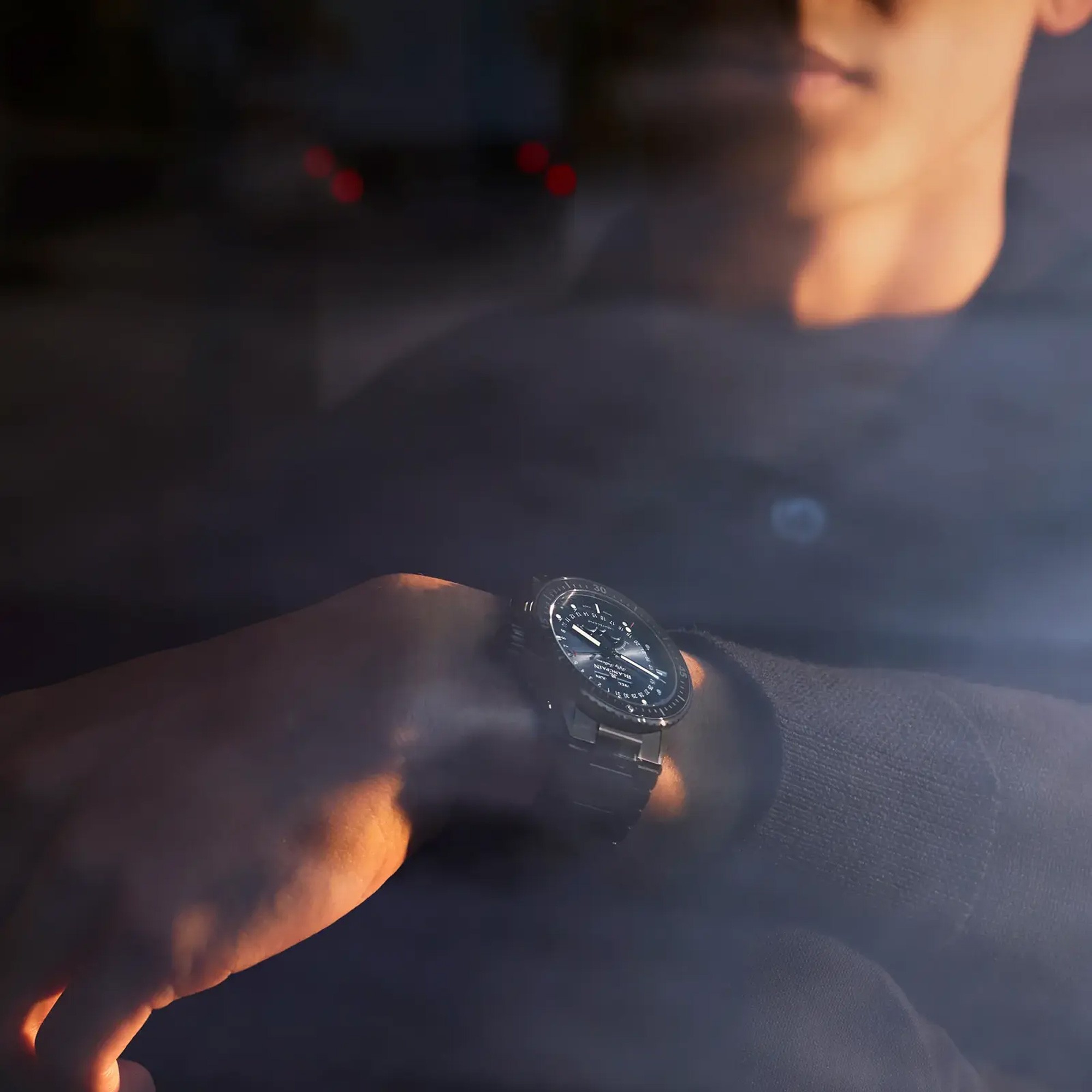 At its heart is an automatic movement, guaranteeing precision and reliability. The striking black dial features elegant dot and baton markers, accentuated by the clarity of sapphire crystal glass. This watch is designed for the adventurous spirit, boasting an impressive 300 metres of water resistance, making it a perfect companion for underwater explorations.