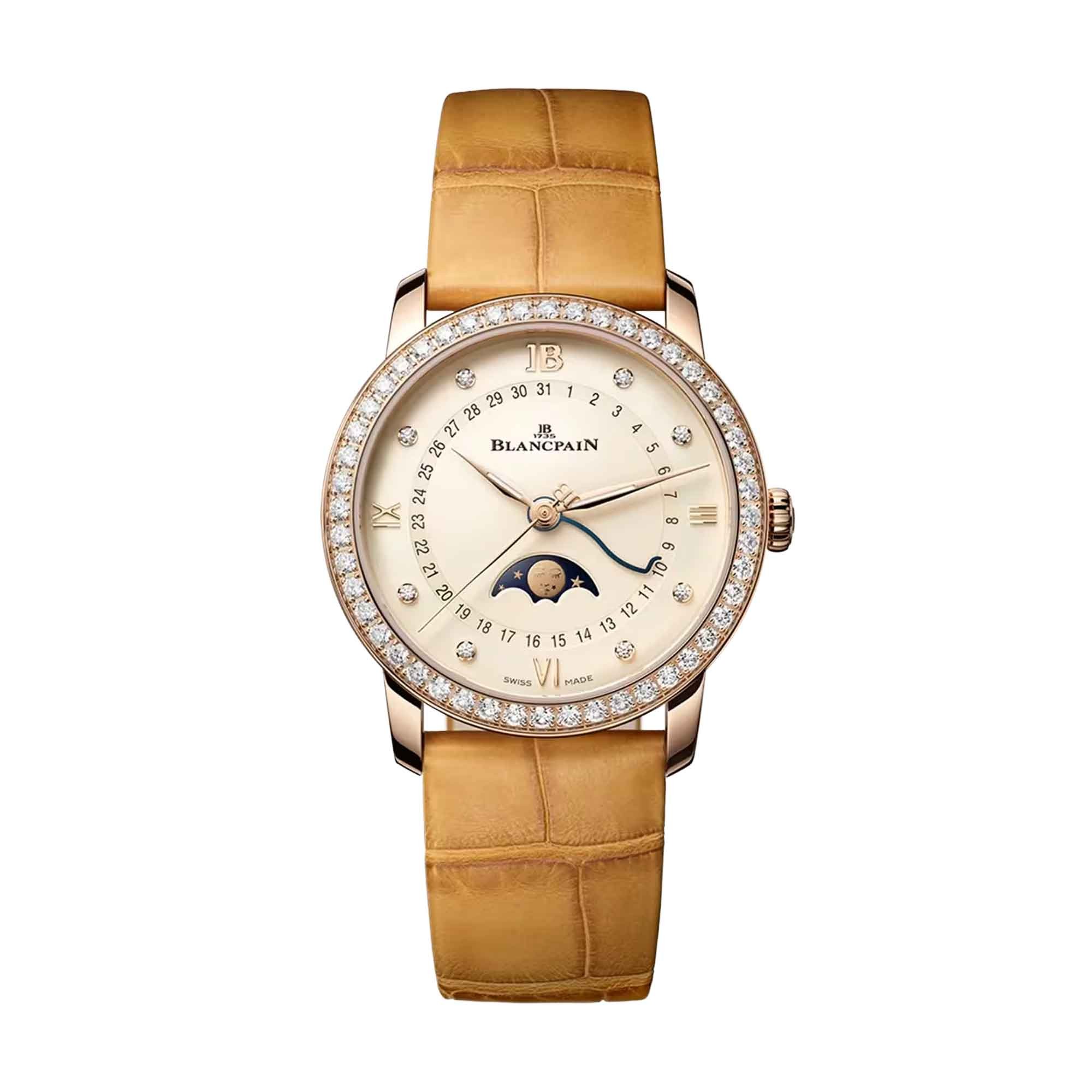 The Blancpain Villeret Quantième Phases de Lune Watch 6126N 2987 55B pairs classic design with refined watchmaking. A moonphase sits at 6 o’clock, balanced by a pointer date for clear, at-a-glance reading.