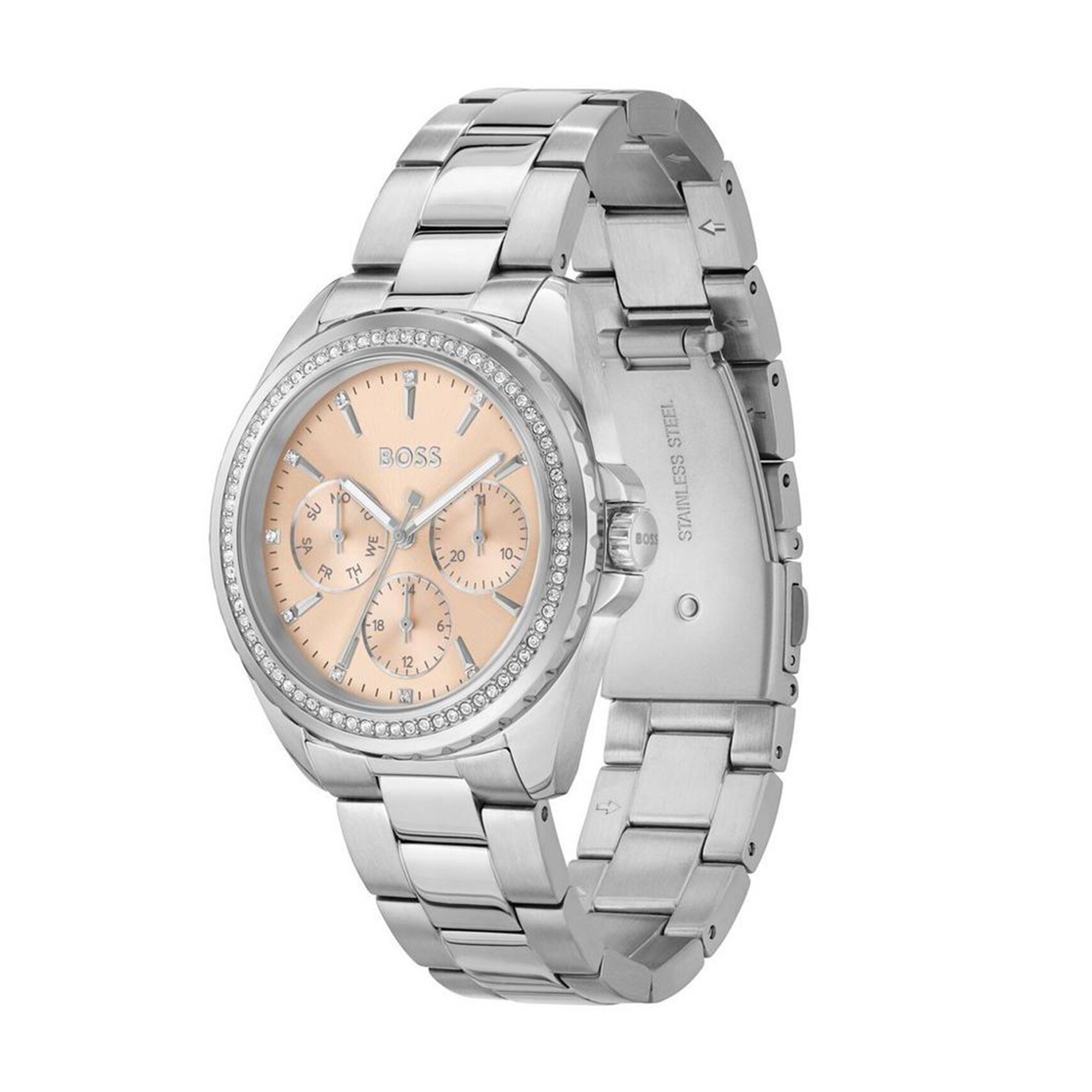 Add a touch of luxury to your wrist with the BOSS Atea Stainless Steel Crystal Quartz 30mm Ladies Watch 1502732. Elevate your look with this timeless piece that combines fashion and function seamlessly.