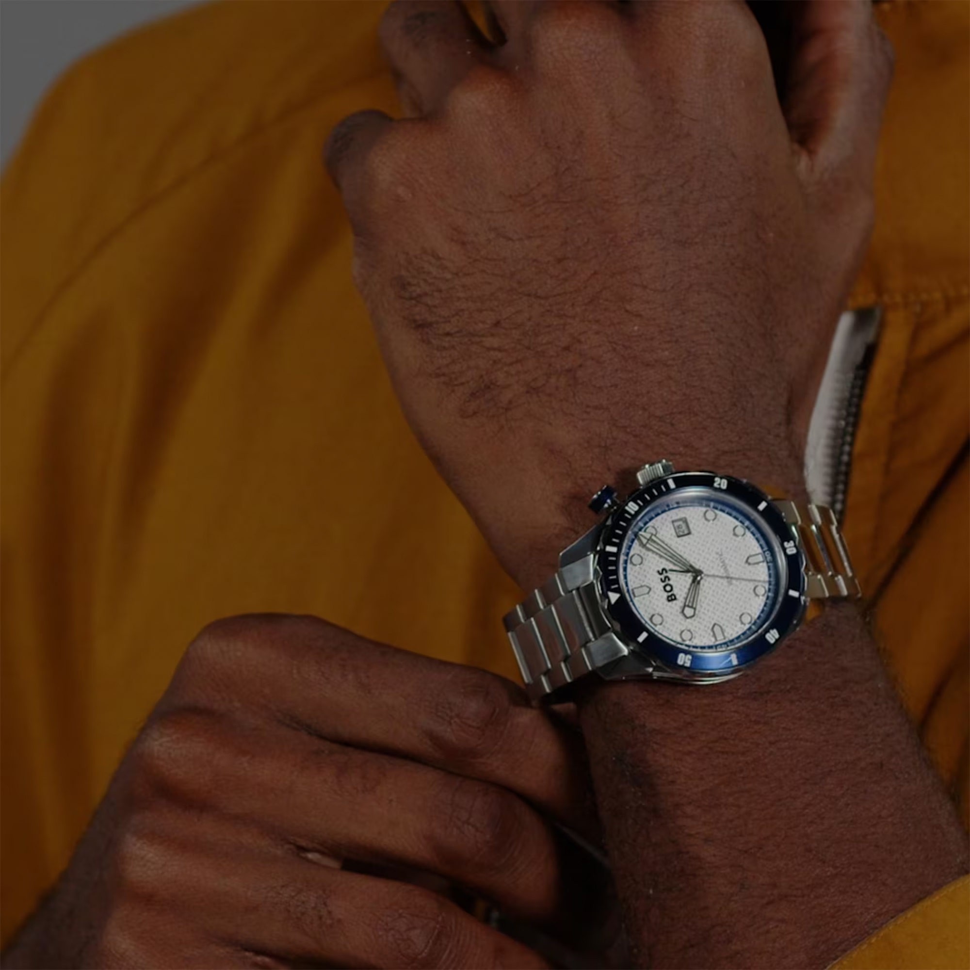 The metal bracelet strap adds a touch of elegance, featuring a secure deployment clasp for easy wear. Presented in exclusive BOSS packaging, this watch perfectly complements any man's wardrobe, making it an ideal gift for him.